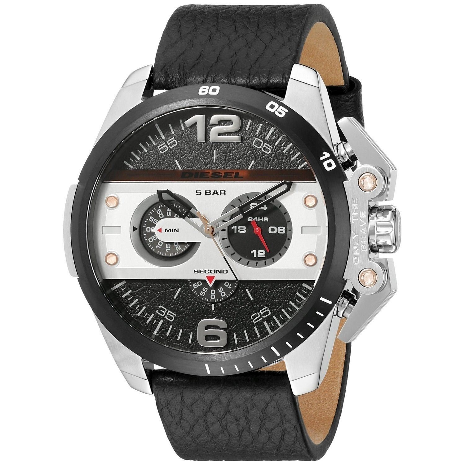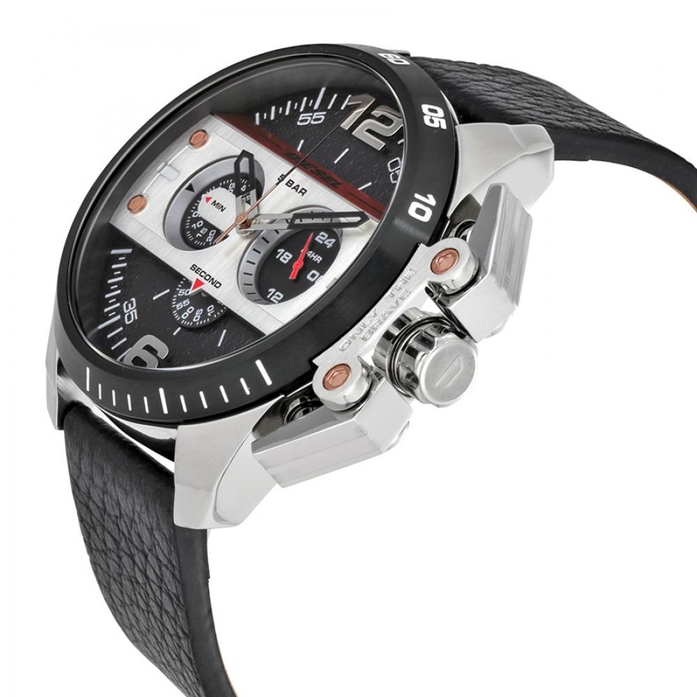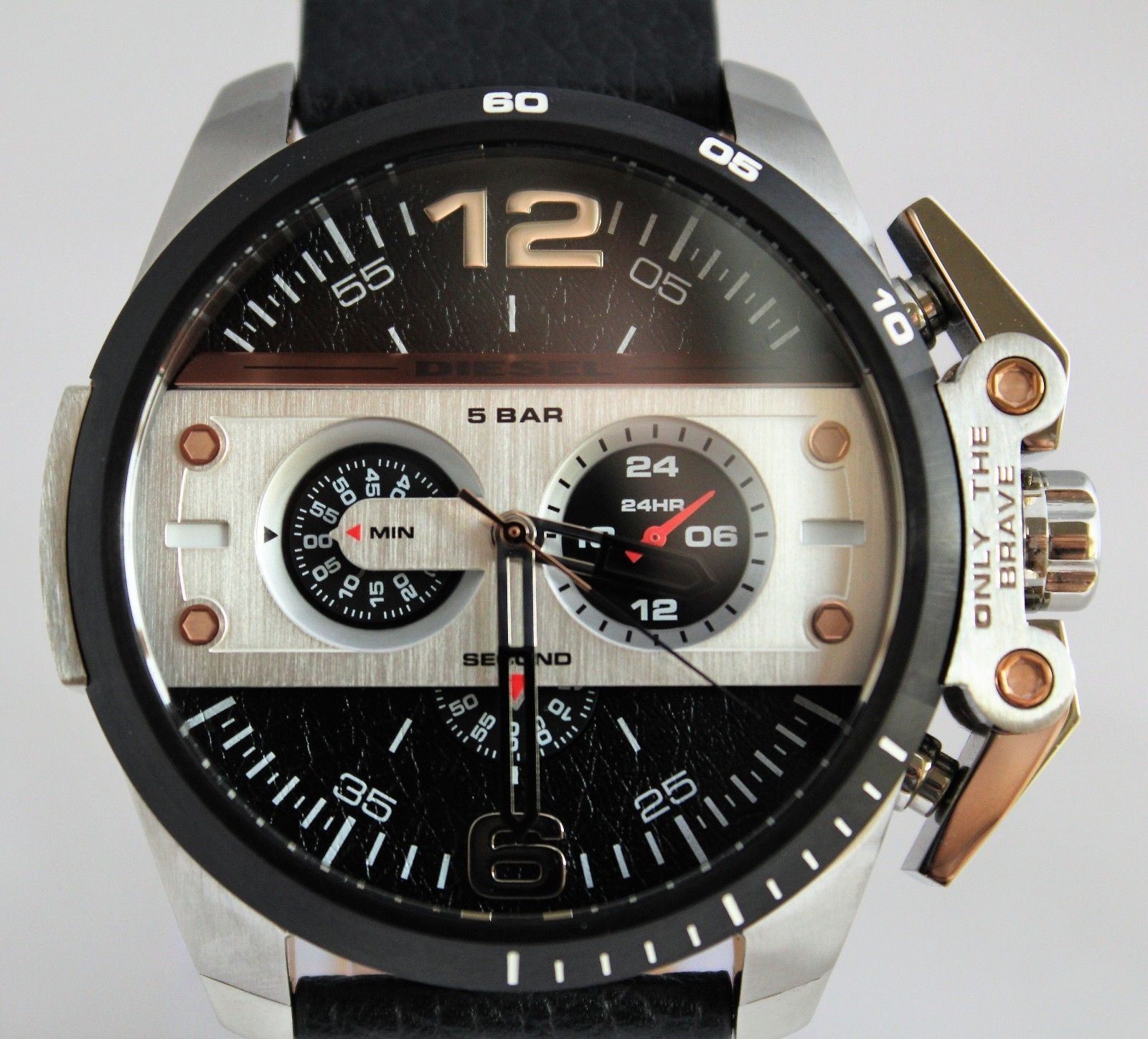 STEEL BEZEL, BLACK LEATHER STRAP. JEWELLERY.