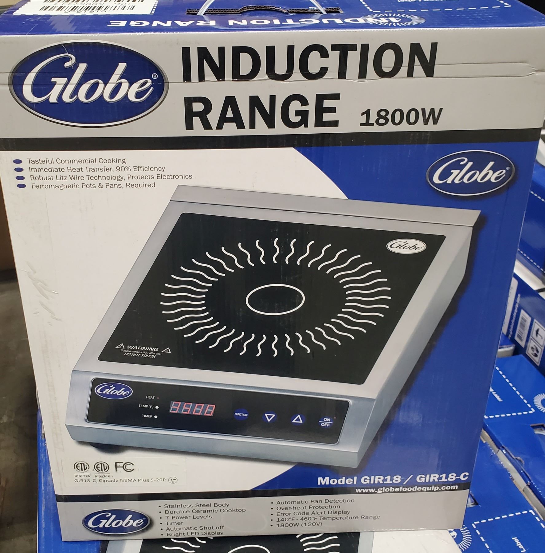 STAINLESS STEEL BODY, DURABLE CERAMIC COOKTOP, 7 POWER LEVELS, AUTO SHUT OFF, LED DISPLAY, AUTO PAN DETECTION, OVER HEAT PROTECTION. **ATTENTION THIS IS 120 VOLT 20 AMP PLUG** NO REFUNDS