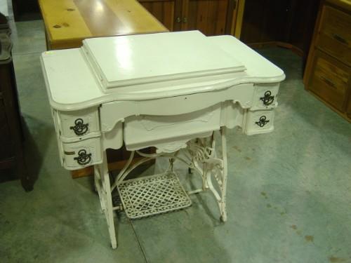 NEW HOME TREADLE BASE SEWING MACHINE; PAINTED CABINET