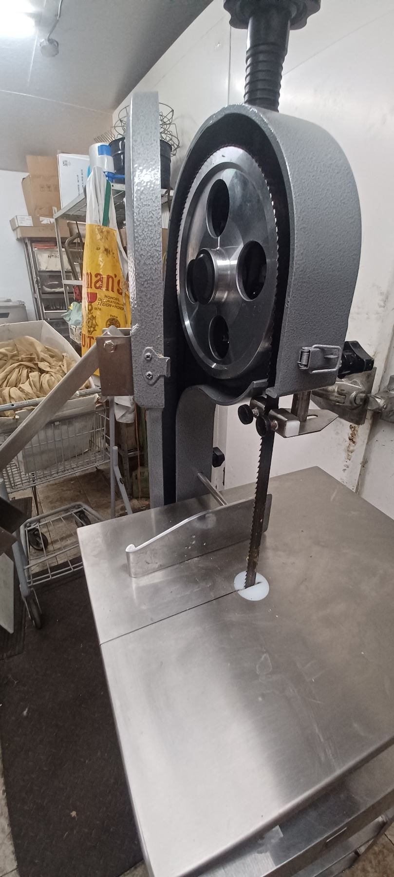 NEW JG 210C TABLE TOP BAND MEAT SAW C/W 850 W MOTOR, 10 INCH NECK UNIT STILL IN CRATE