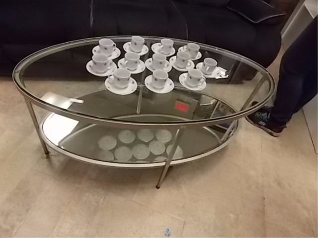 NEW OVAL METAL & GLASS MIRROR TOP COFFEE TABLE