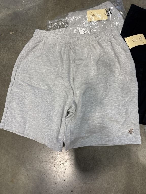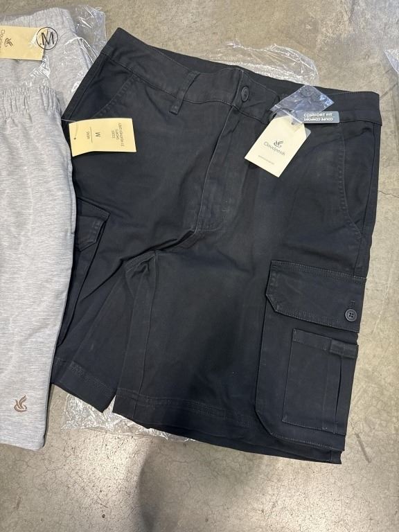 NEW PAIR OF CLOUDPEAK SIZE 30 BLACK STRETCH CARGO SHORTS AND 2 NE WPAIRS OF SIZE MEDIUM CLOUDPEAK HEATHER GREY SHORTS
