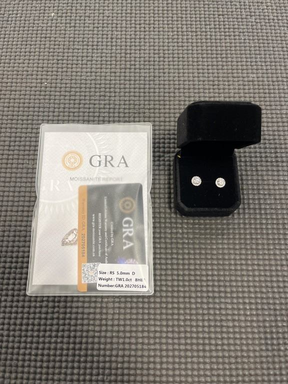 NEW S925 0.5CT EACH MOISSANITE LAB DIAMOND HALO STUD EARRINGS, MOUNTED IN 925 STERLING SILVER W/ WHITE GOLD OVERLAY, D, VVS1, GRA REPORT