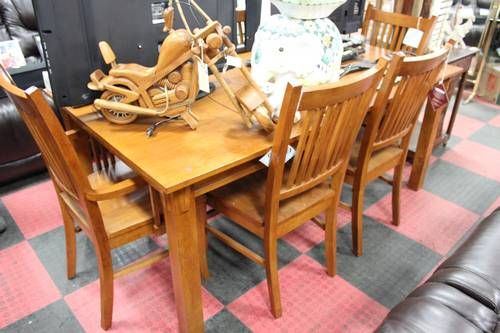 NEW SOLID WOOD OAK TABLE W 4 SIDECHAIRS AND 2