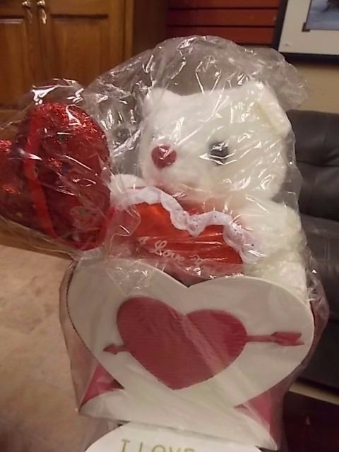 NEW TEDDY BEAR IN HEART BOX 7 X 7  ) - I LOVE YOU - SMALL. WITH 1 TEDDY