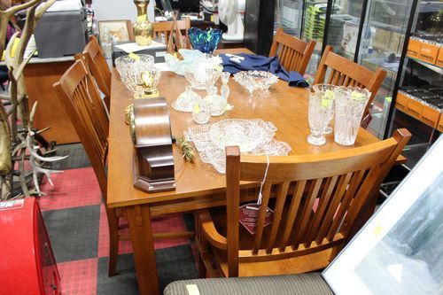 NEW WOOD TABLE W 4 SIDECHAIRS AND 2 ARMCHAIRS