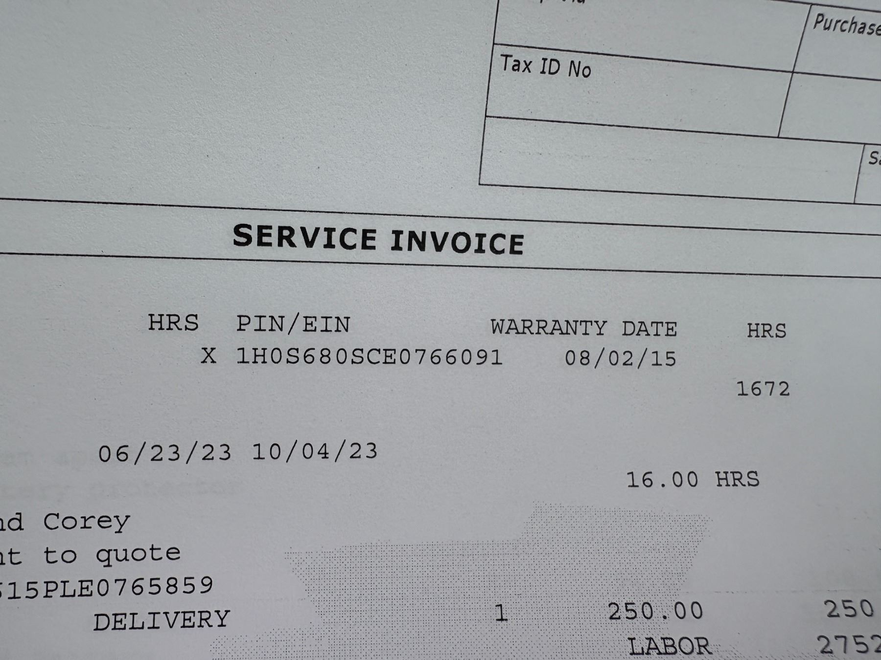 NEW WORK ORDERS AT THE END (Lots 21 & 22 are a Group Lot) JD S680 Combine DARCY tells us that this combine was purchased at Deerland and was Greenlighted and was used for one season with Approx. 50 hrs. on it since purchased, 1560 Threshing hrs., 2328 Engine hrs., #1H0S680SCE0766091, 615P, 4 belt pickup, 520/80x42 duals, Chopper, Long Auger