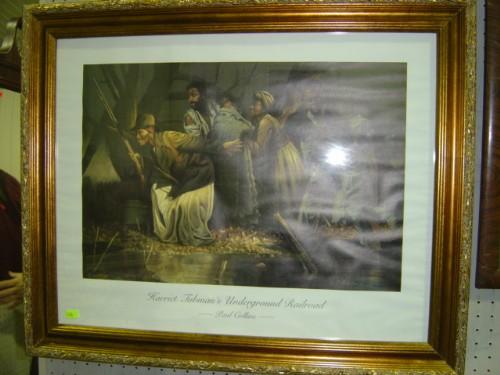 NEWER GUILTED FRAMED PRINT OF HARRIET TUBMAN'S UNDER GROUND RAILROAD; 32 1/2 X 27