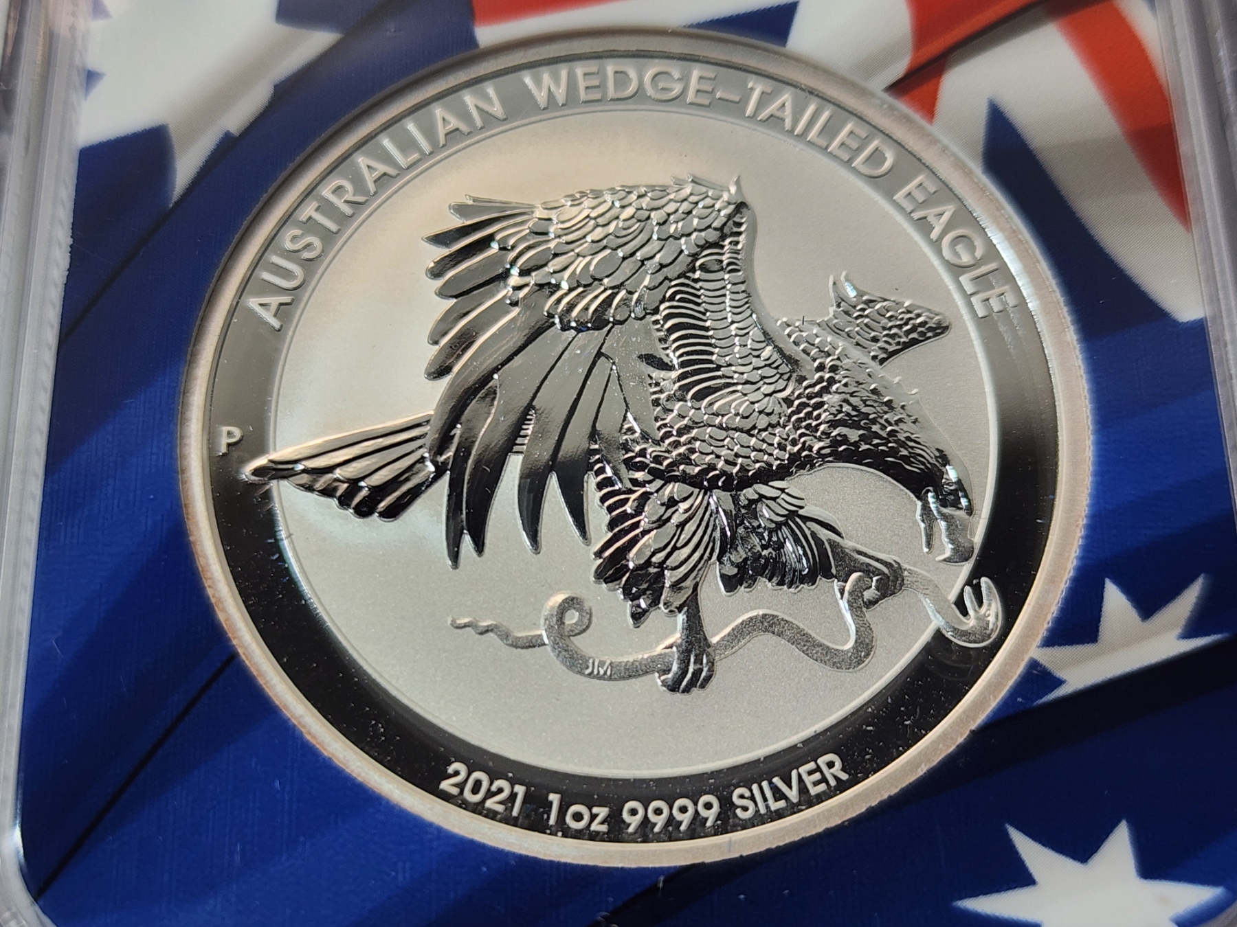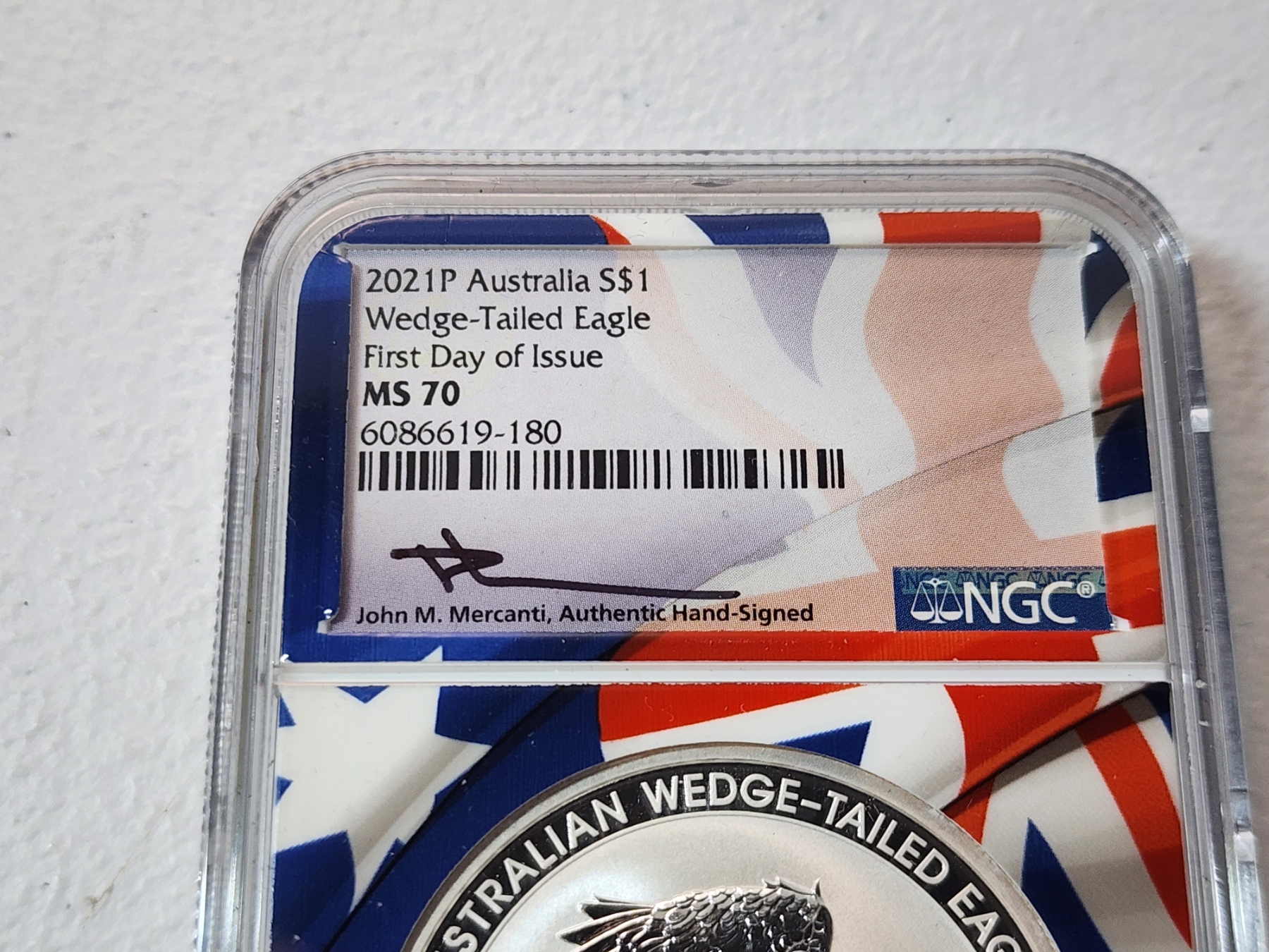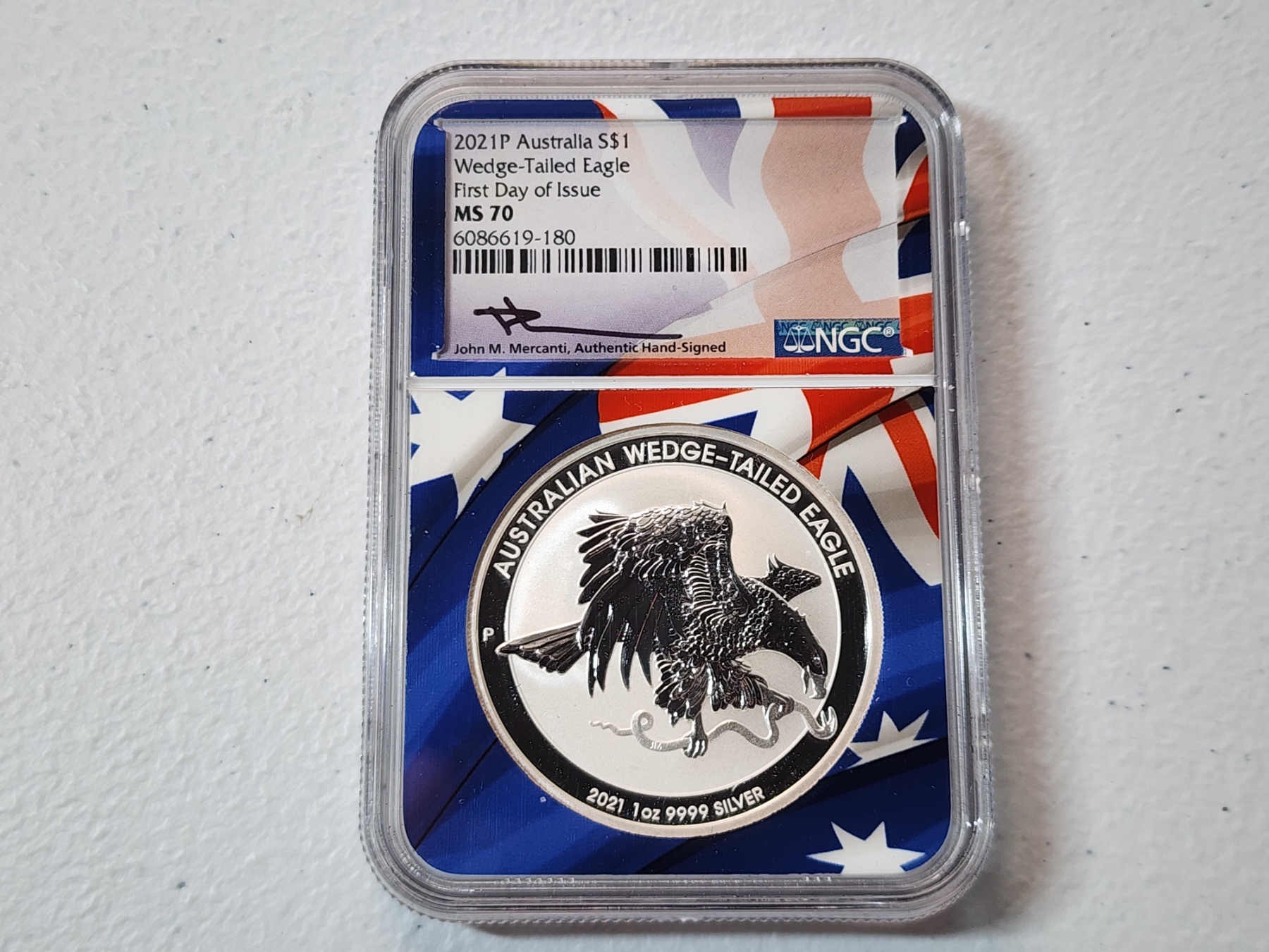 NGC 2021 P Australia .9999 Silver Wedge-Tailed Eagle FDOI MS 70 Signed by Mercanti