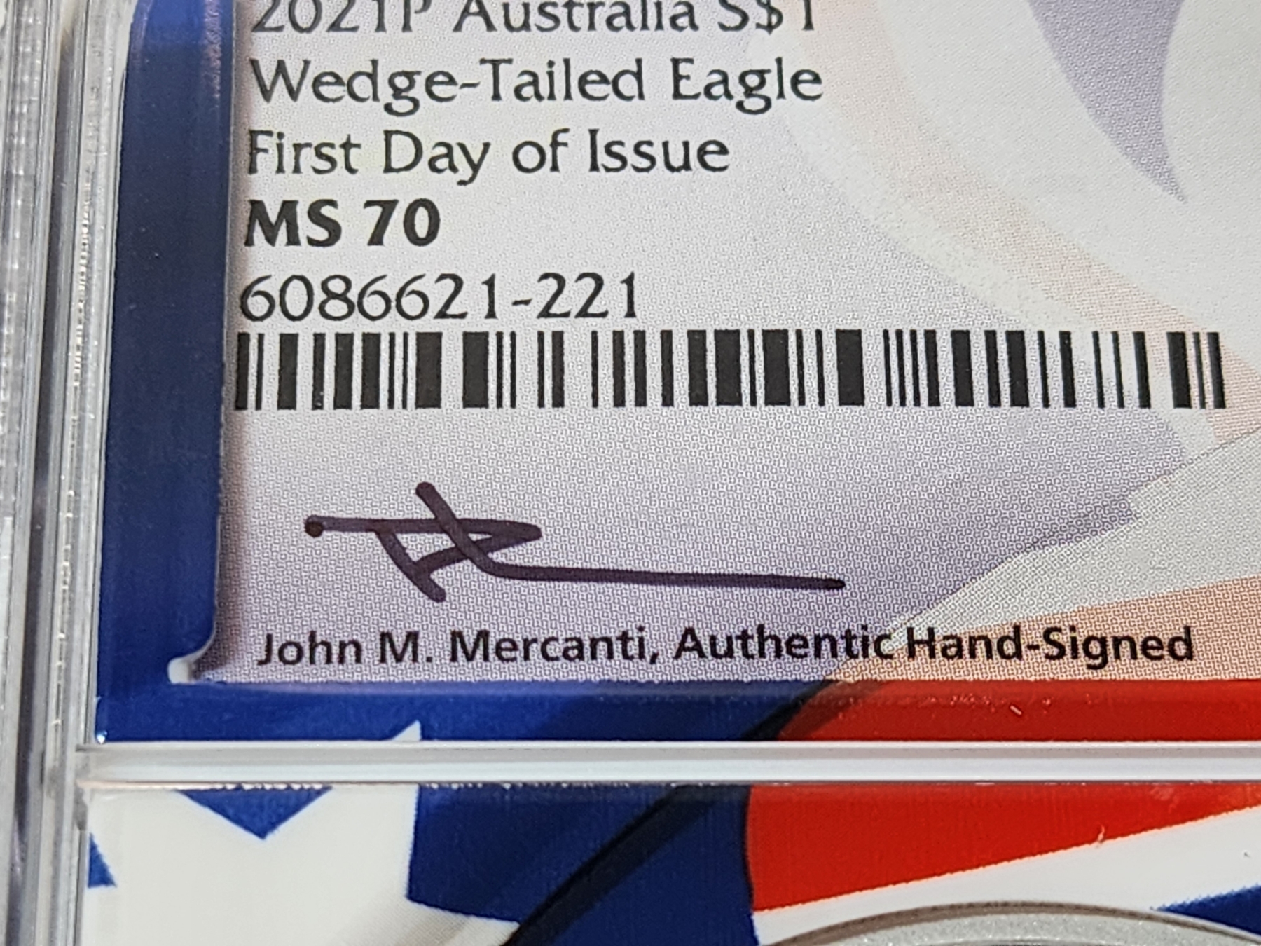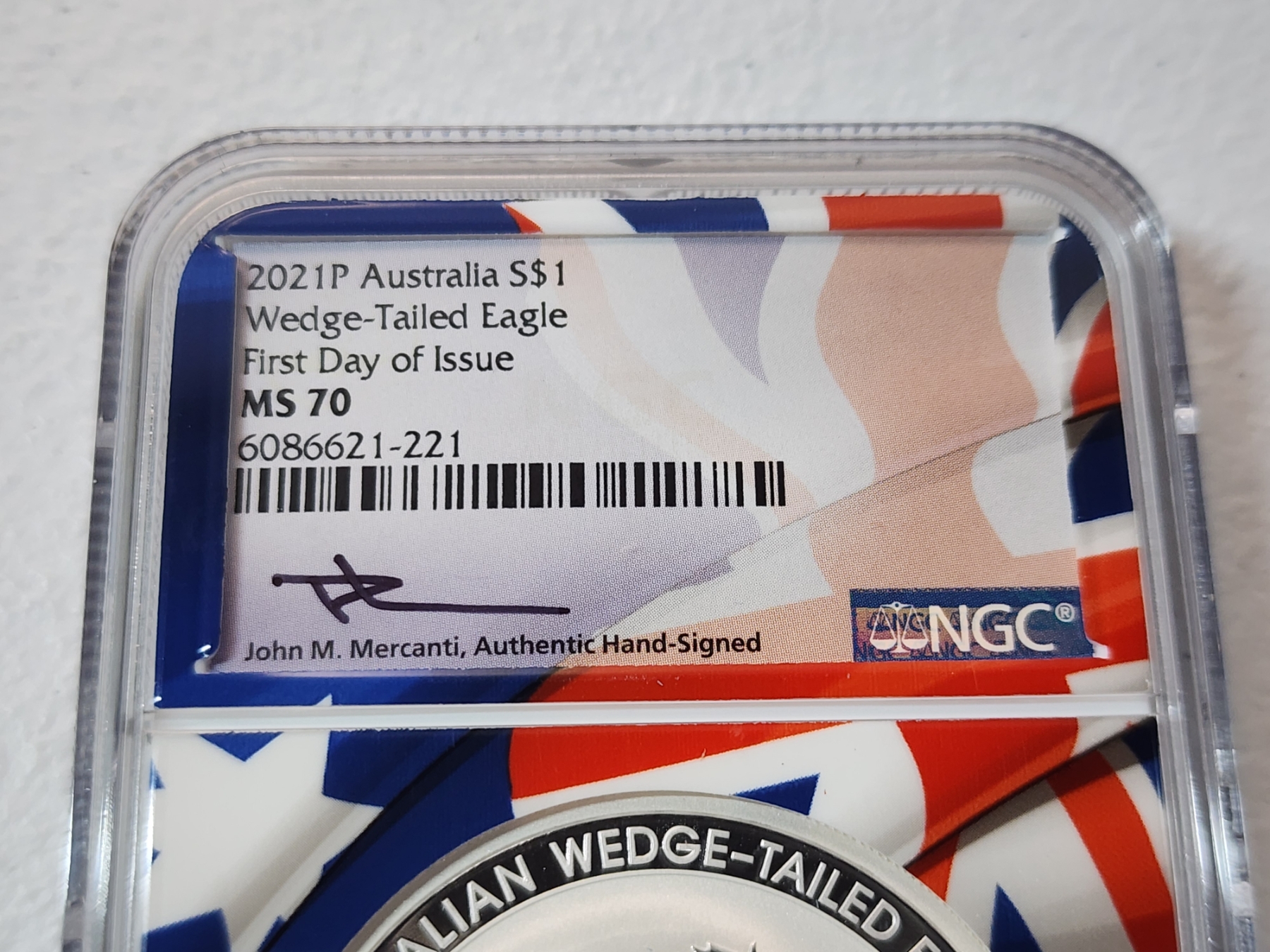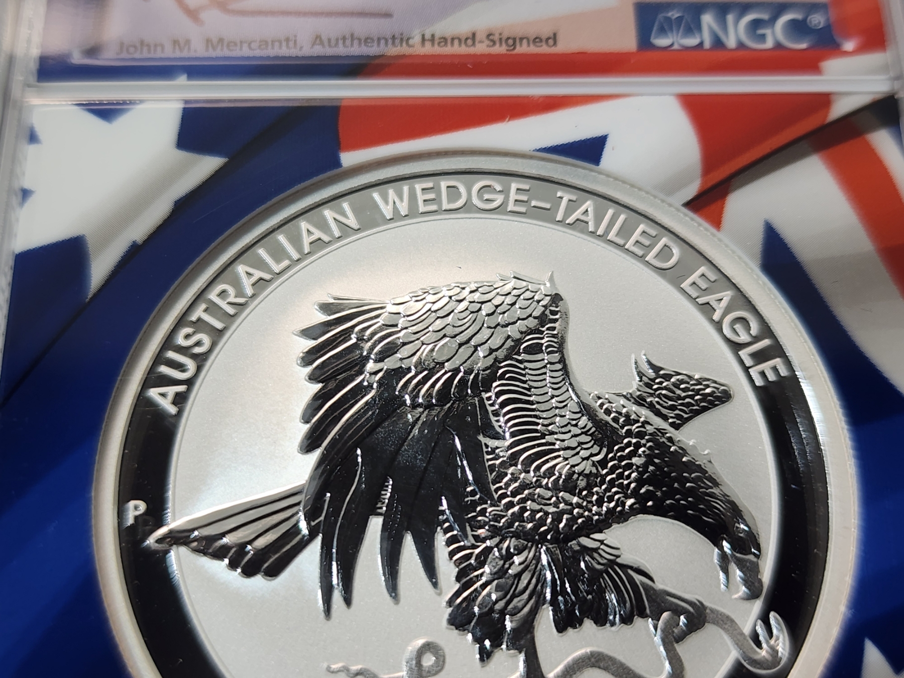NGC 2021 P Australia .9999 Silver Wedge-Tailed Eagle FDOI MS 70 Signed by Mercanti