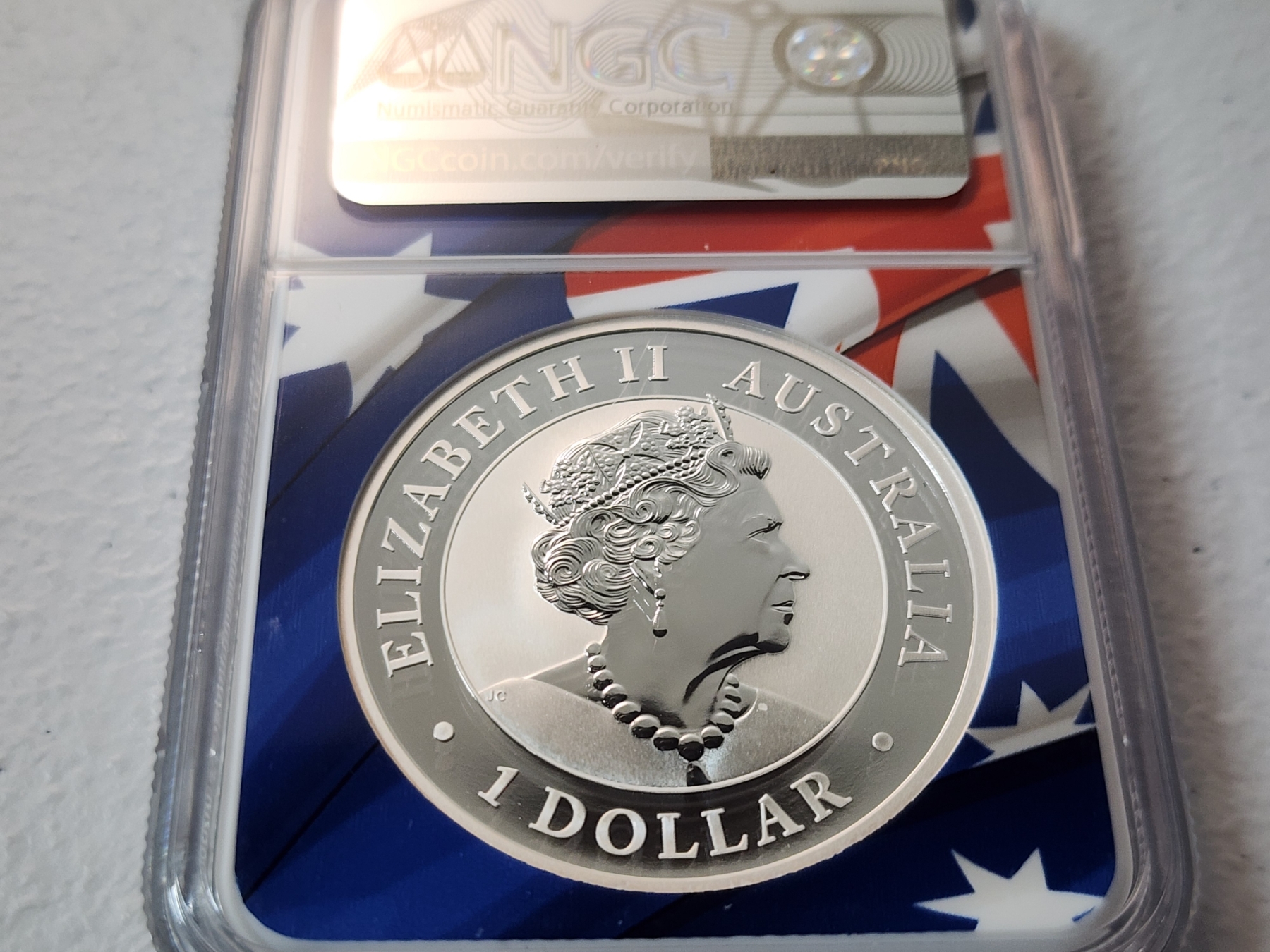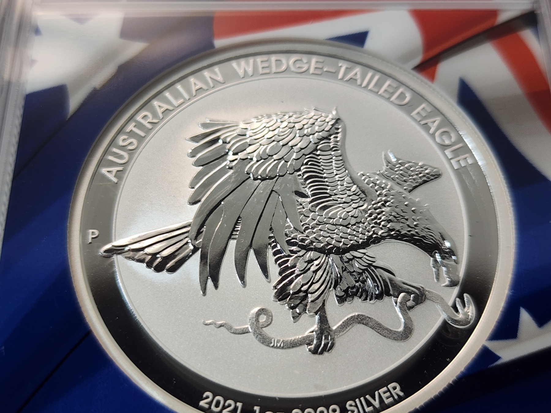 This coin is a part of a 3-coin Silver Wedge-Tailed Eagle First Day of Issue collection set. The other coins and display box are sold separate.