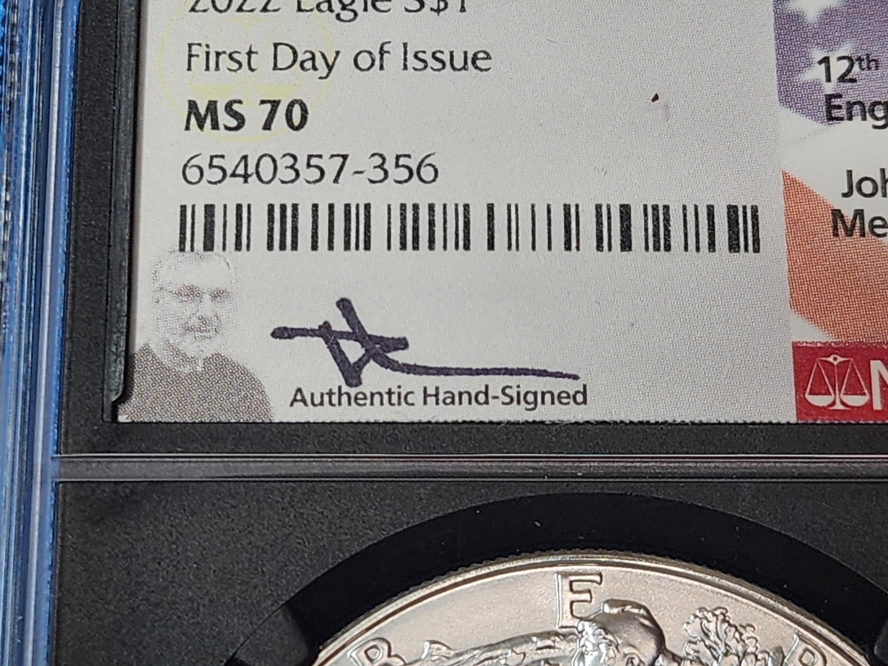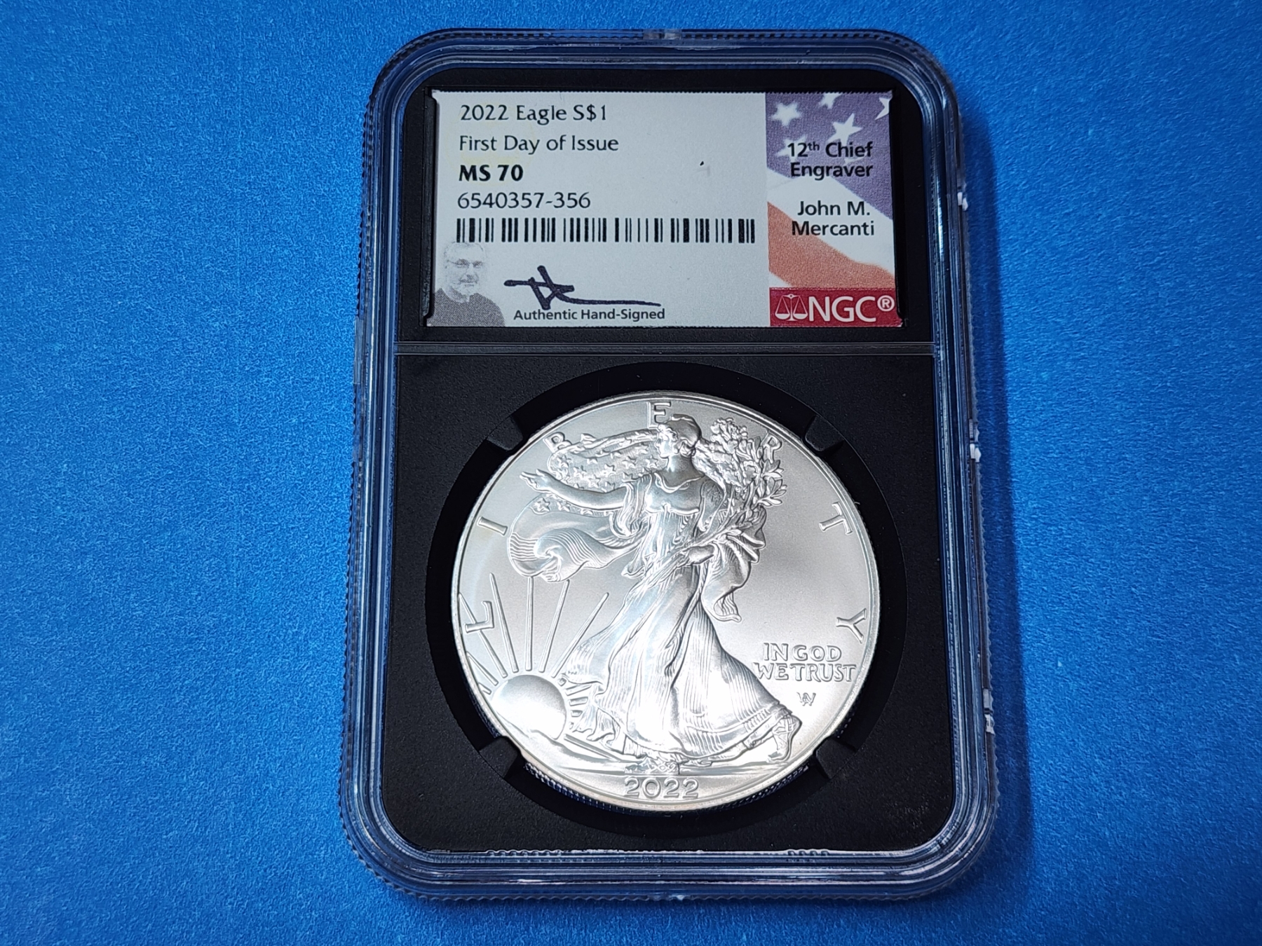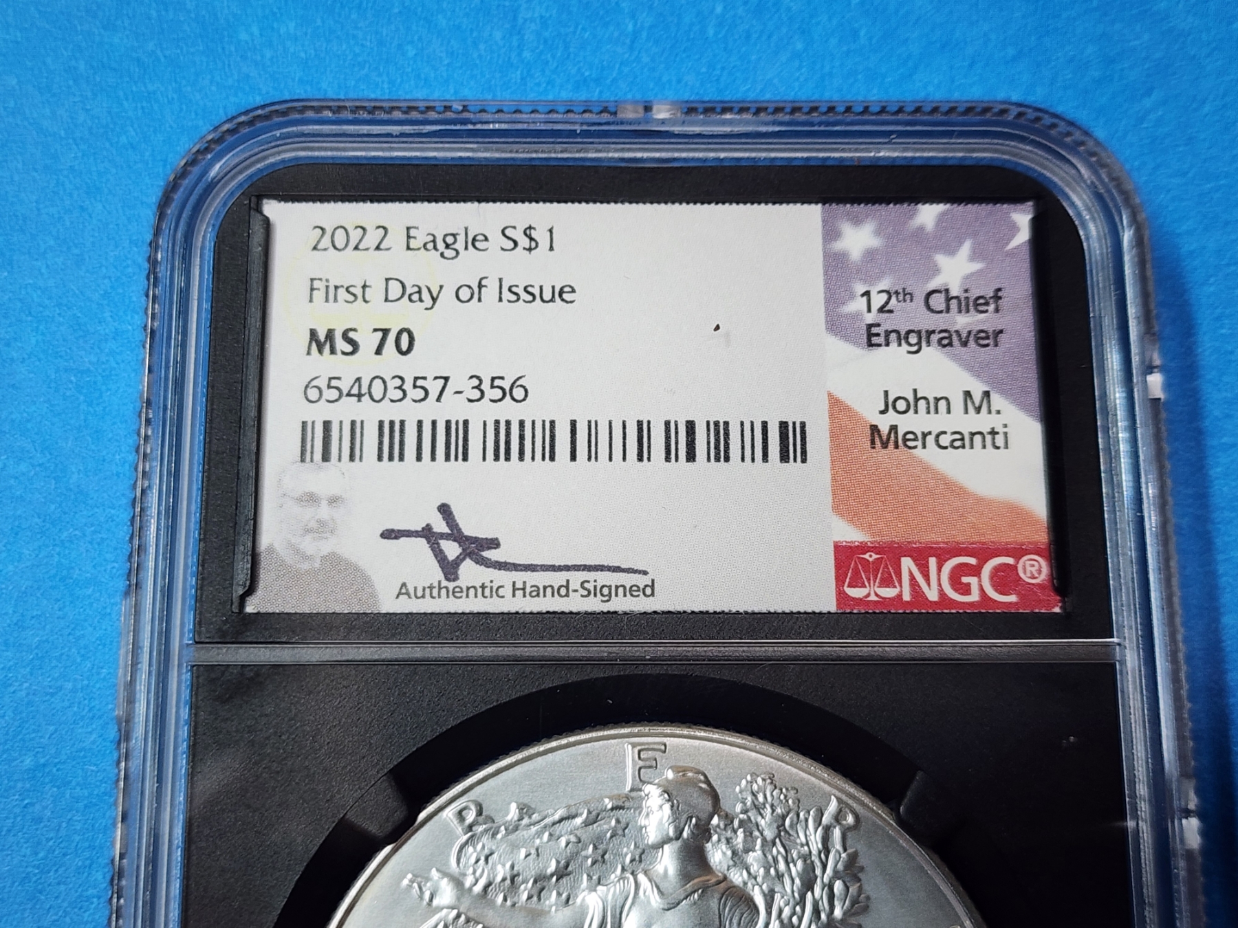 NGC MS 70 2022 1oz American Silver Eagle - First Day of Issue - Mercanti Signed!