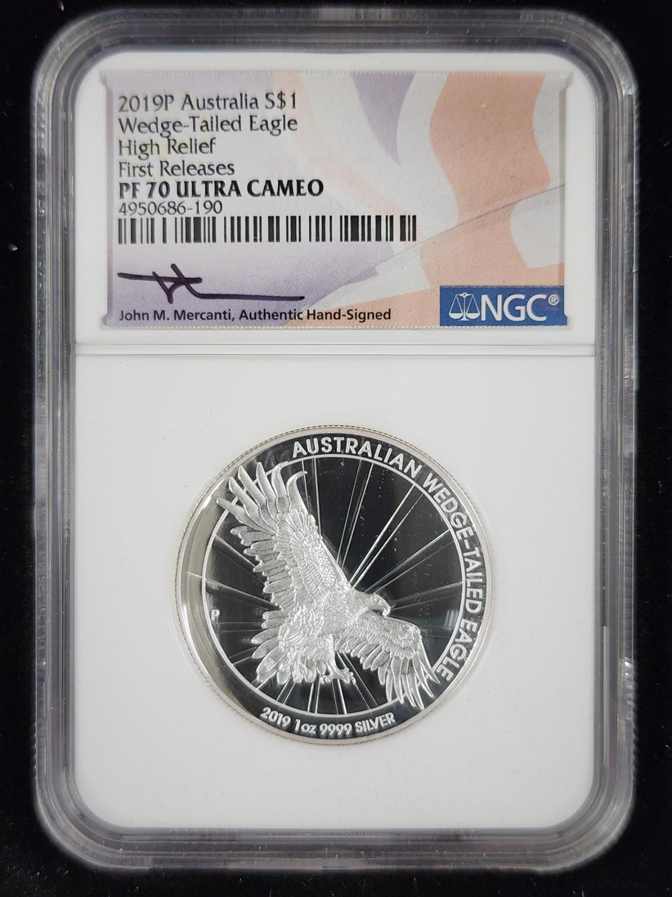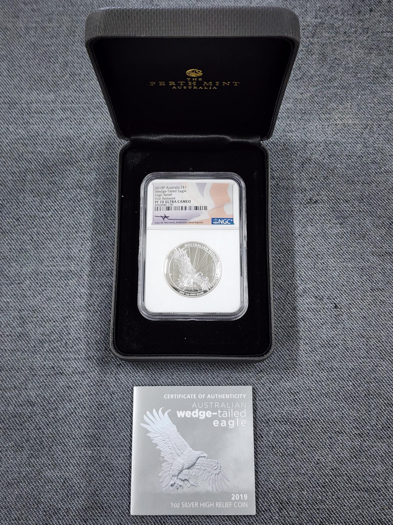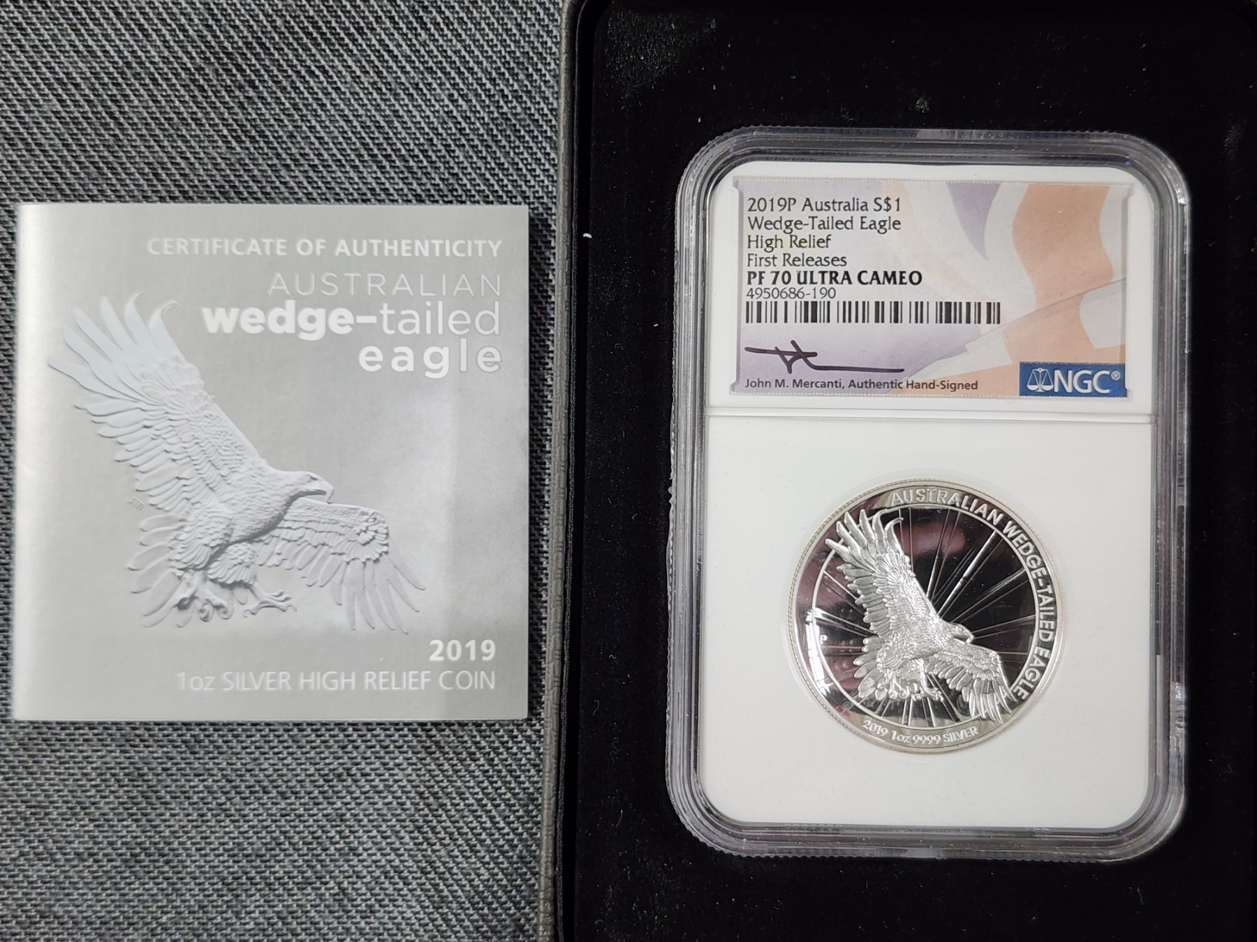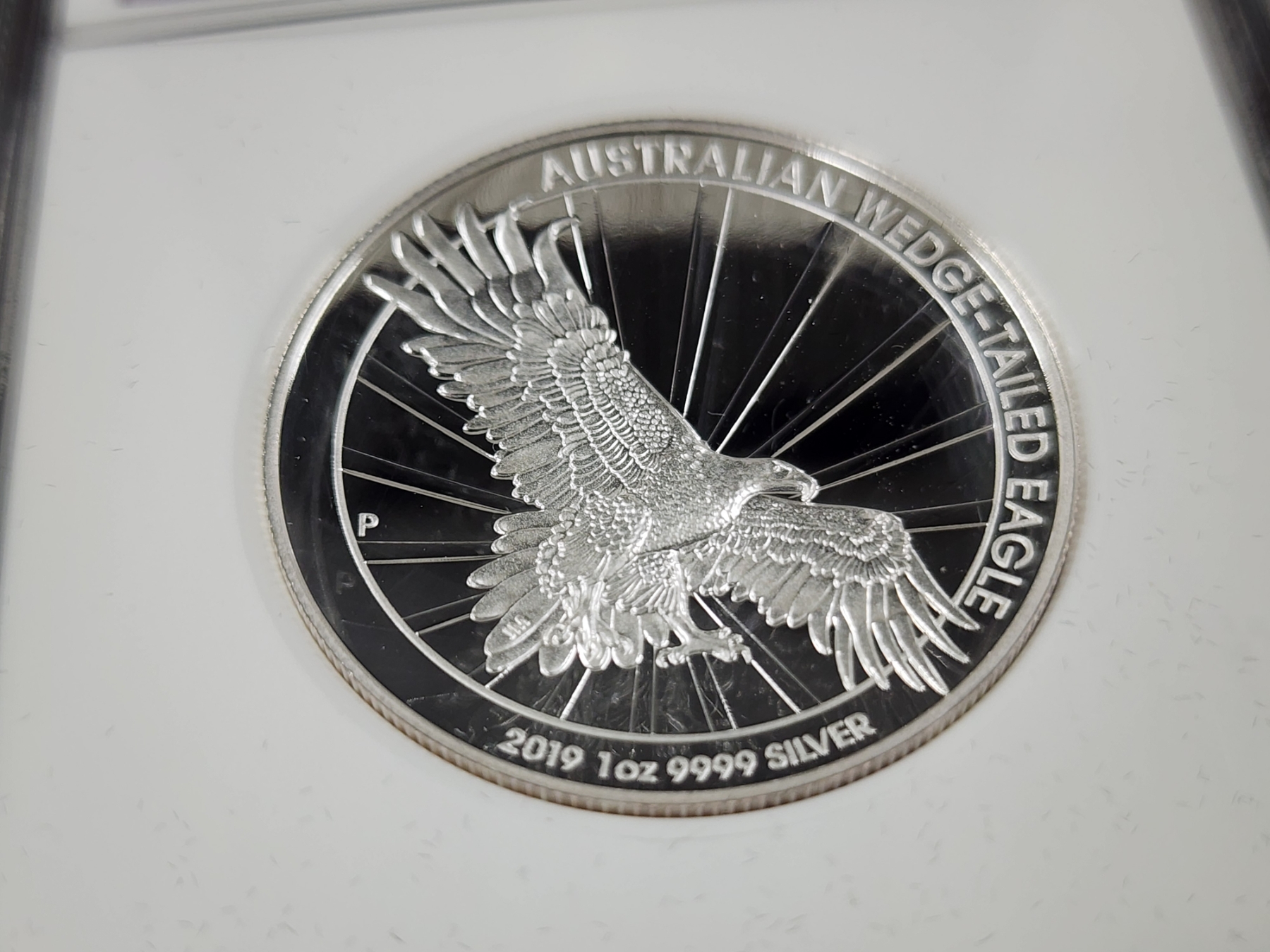 NGC PF70 Ultra Cameo 2019-P Australia Wedge-Tailed Eagle 1 Oz .9999 Fine Silver High Relief Coin