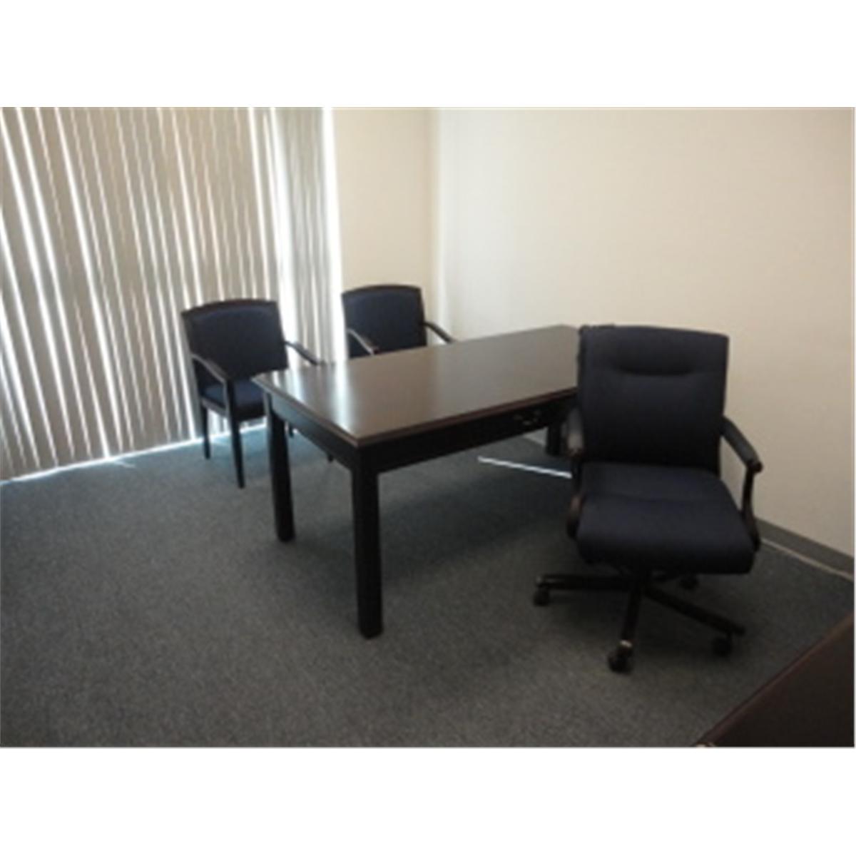 NICE DARK MAHOGONY OFFICE SET - 6' TABLE, 4' Extra Sequence #: BOOKCASE, 5' CREDENZA, 2 ARM SIDE CHA
