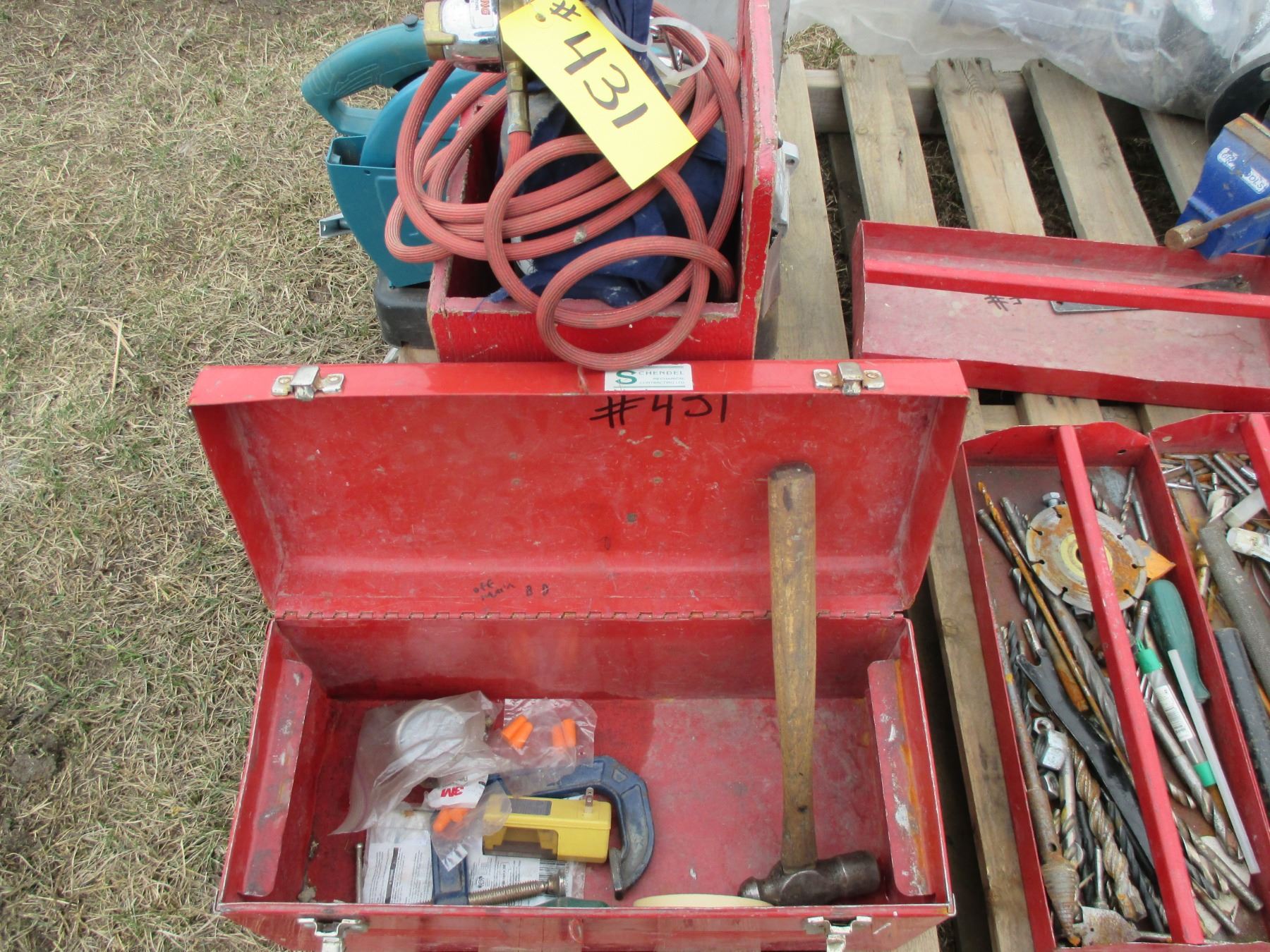 NIKITA CUT OFF SAW, VISE, SMALL TORCH, DRILL BITS, TOOLBOXES, SIEMENS HVAC SKD62