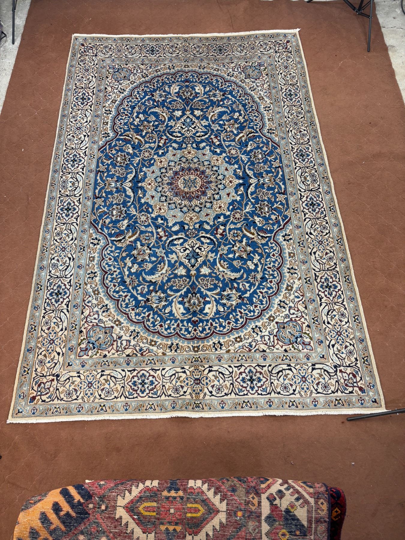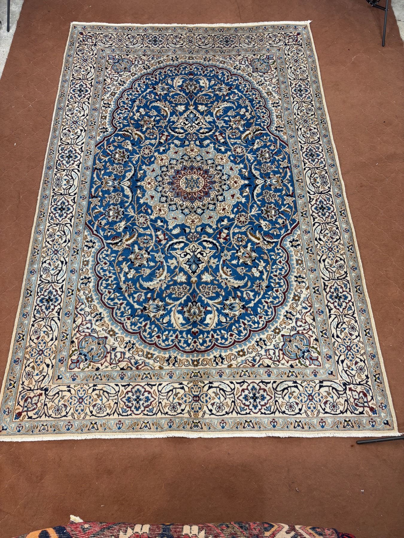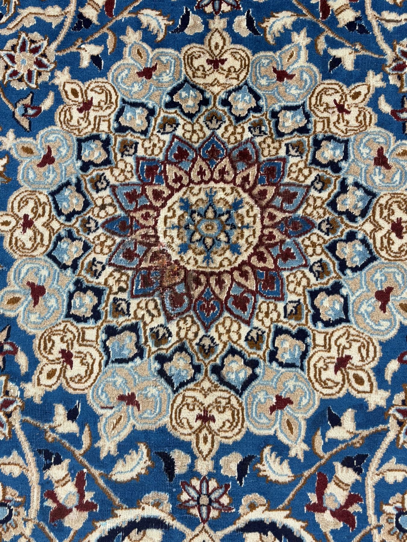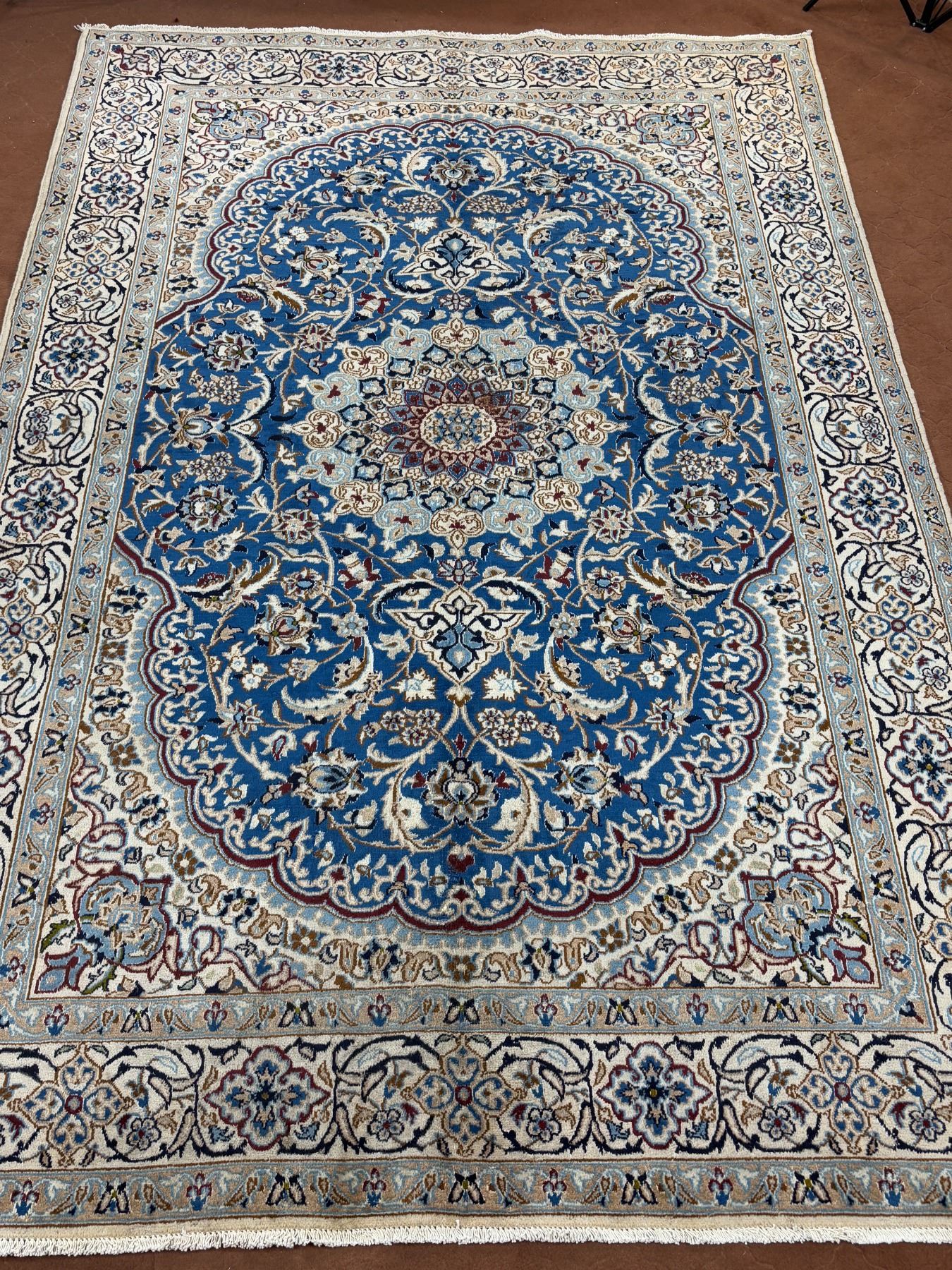 Naein 100% Authentic Hand Knotted Wool Persian Rug Handmade in Iran The best color (beautiful blue) Low pile (These carpets have been washed professionally, and for this reason there are no tears or dirt in this carpet and it will be delivered to you clean and smooth. Don't miss the opportunity to buy such a carpet) Size: 9.9' × 6.2'