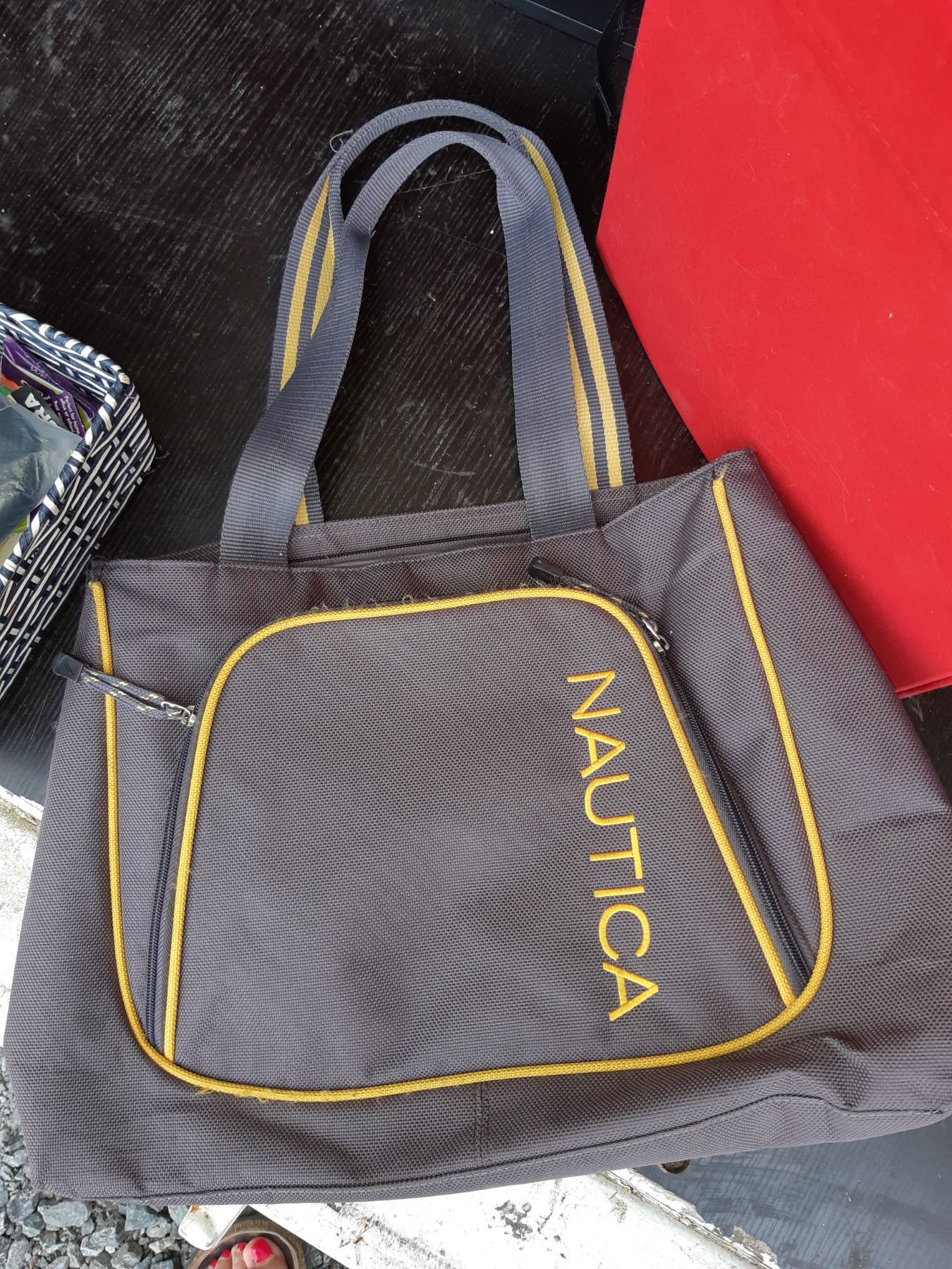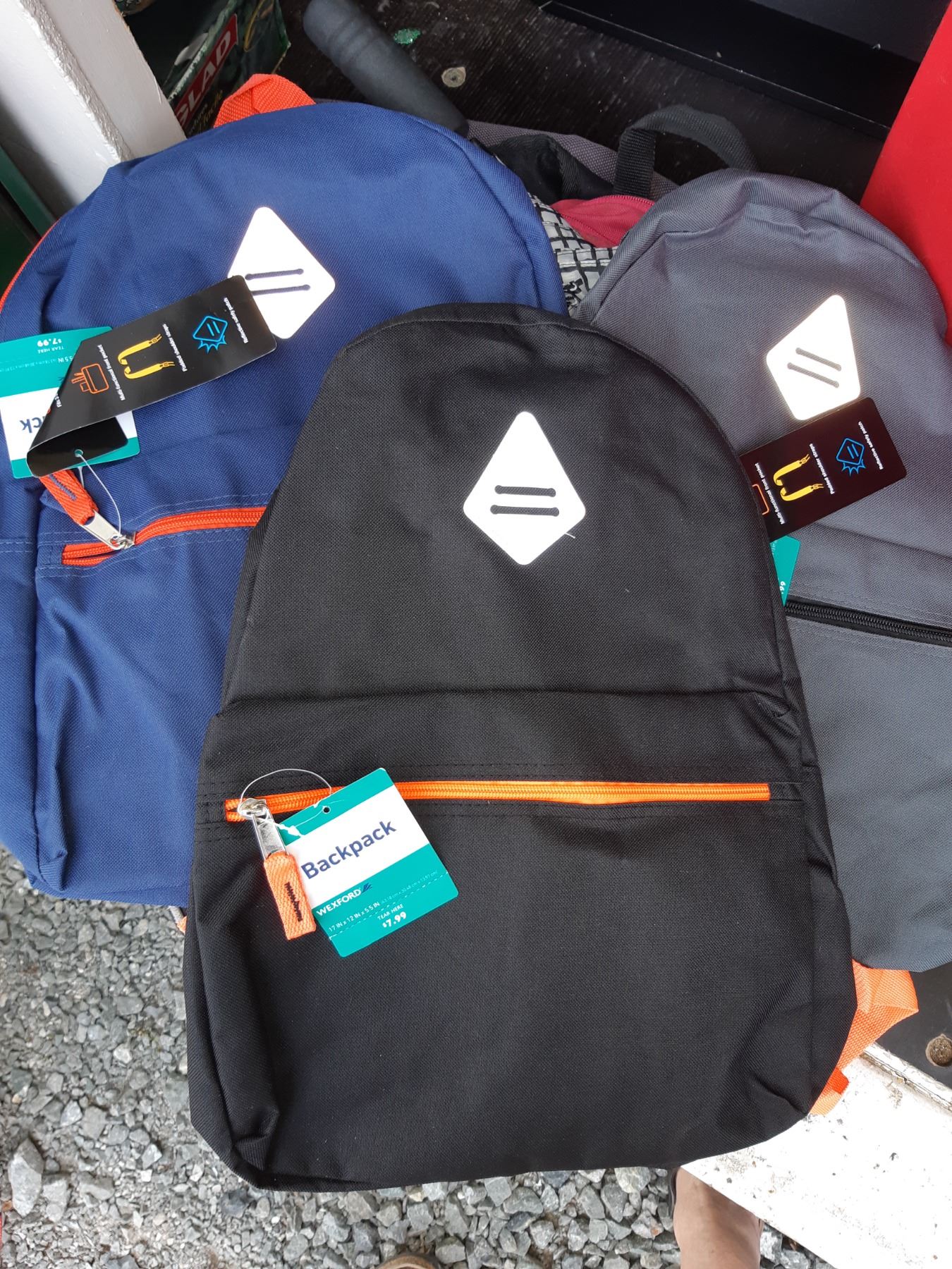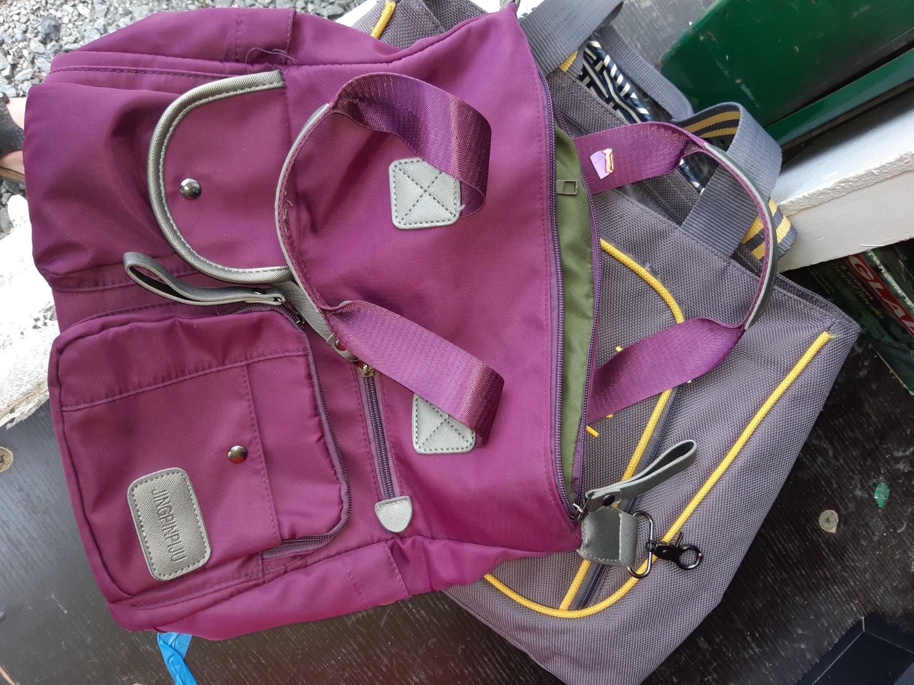 Red canvas box with new & used backpacks, bike helmet, bicycle, padded over shorts for extra seat comfort size L. Scarf holders. Pickup at 10 am