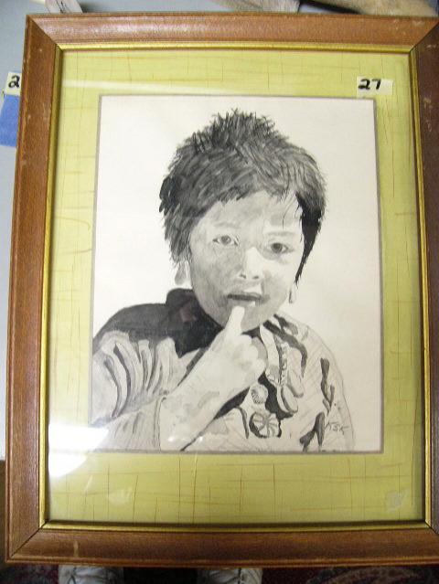 Navajo Child, Pen and ink, Wilson Onesalt Gouche from Photograph (2)