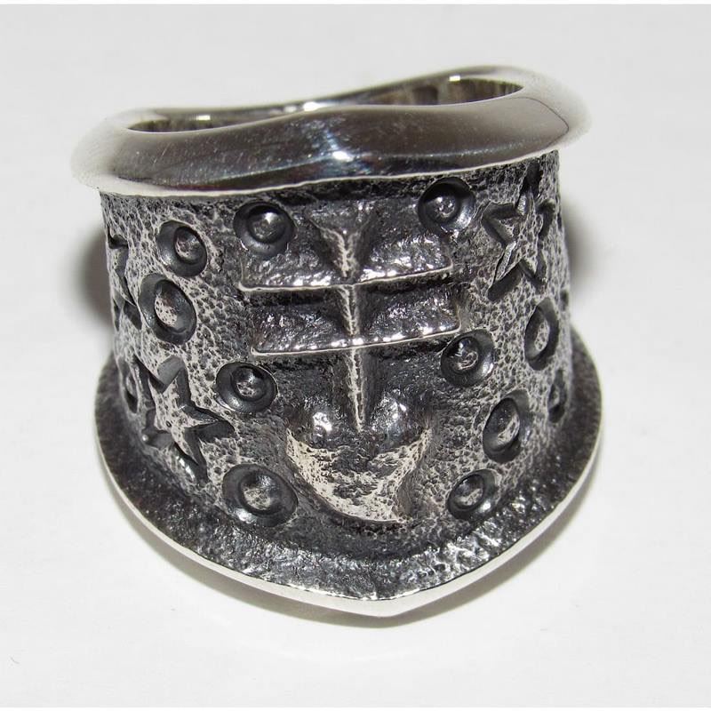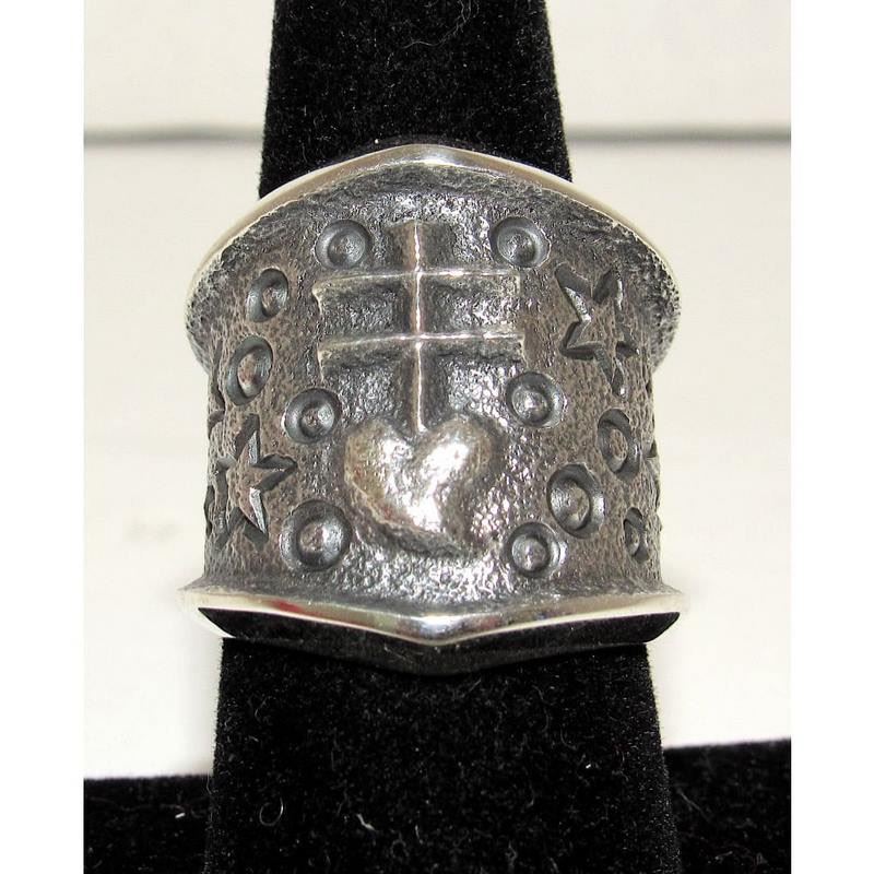 Navajo Kevin Yazzie Pueblo Cross Ring Size 8 Sand Cast Tufa Cast Sterling Silver