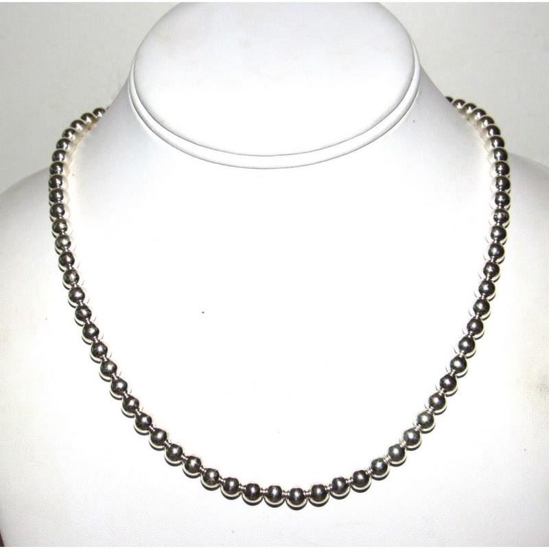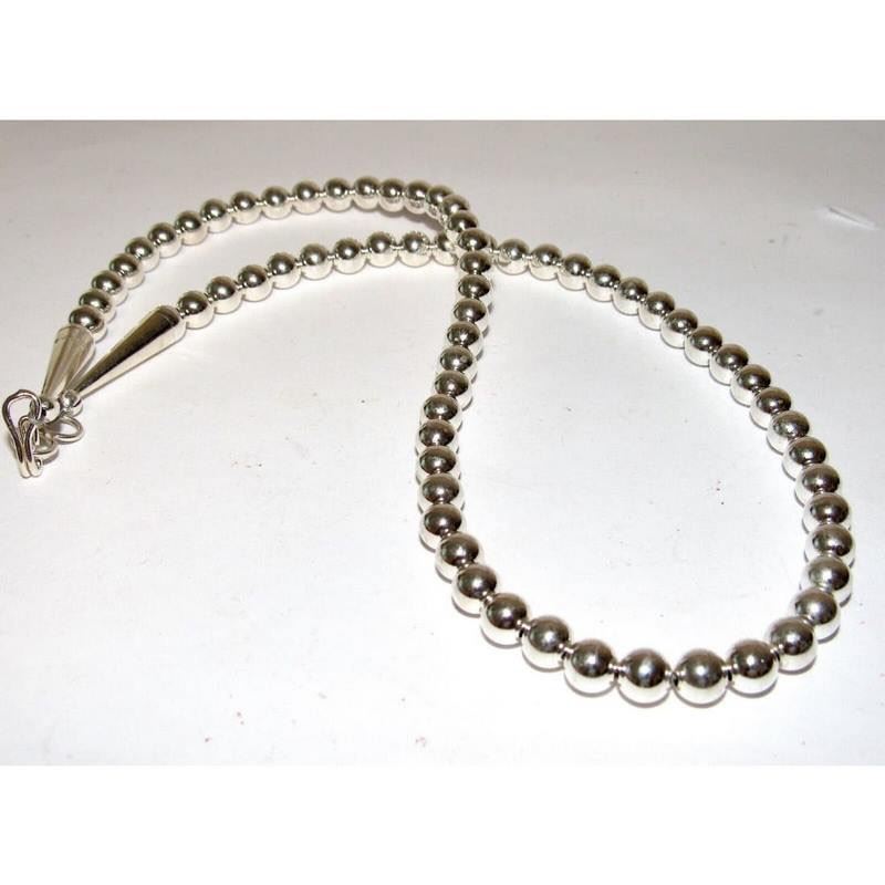 Navajo Pearls Necklace Sterling Silver 6mm Beads Necklace 18"L
