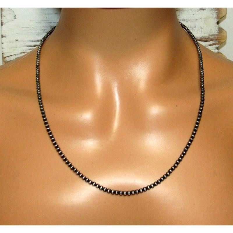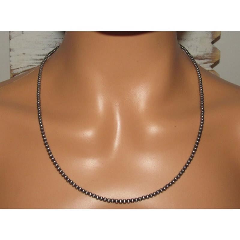 Stunning 3mm Navajo pearls necklace. Measures about 22" long. Gorgeous, elegant & timeless piece that is sure to complement any outfit. Wonderful gift for anyone or yourself! :) FREE SHIPPING ON ALL JEWELRY ORDERS WITHIN THE US! WE SHIP ALL ITEMS IN-HOUSE!