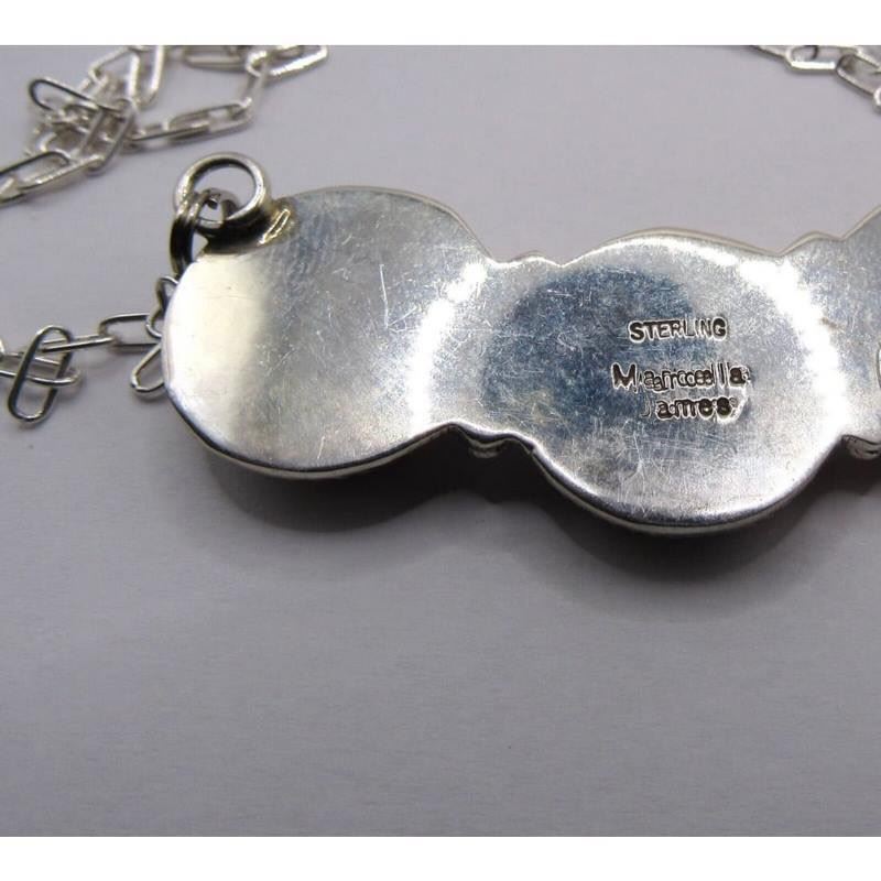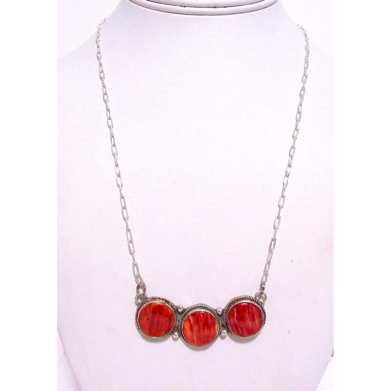For your consideration is this stylish Navajo sterling silver and red spiny oyster bar necklace by the Navajo artist Marcella James. Stunning natural stones and intricately hand etched, detailed design in sterling silver. The necklace is about 24" long. The spiny triple stone bar pendant measures about 2" wide. Stamped "sterling" and is signed by the artist, features the artist's hallmark on the back. Gorgeous stones, sterling chain necklace with a hook & eye closure. Stunning example of collectible, wearable Native American art! FREE SHIPPING ON ALL JEWELRY ORDERS WITHIN THE US!