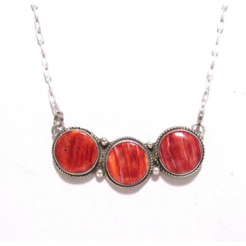 Navajo Red Spiny Bar Necklace Sterling Silver Native American Marcella James