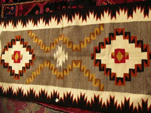 Navajo rug 64" length x 31" width; contemporary decorator's rug with floral design (53)