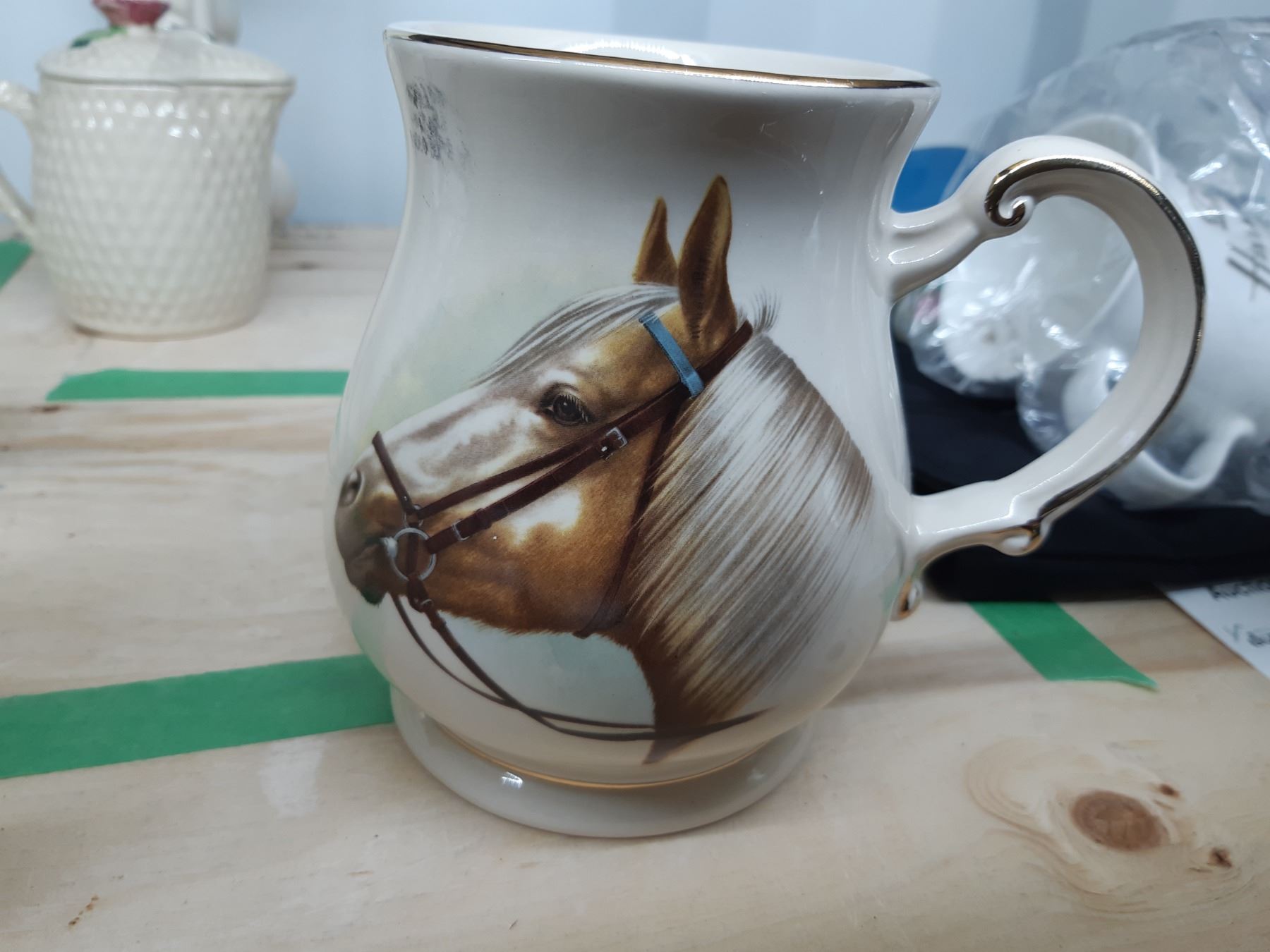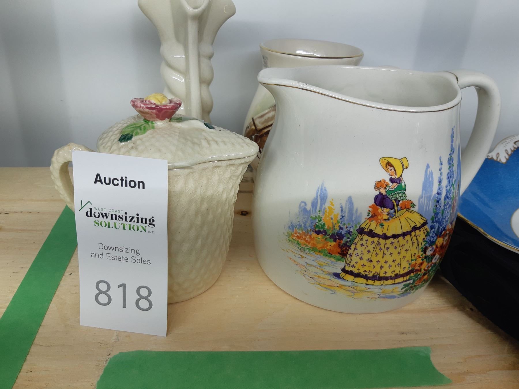 Nelsonware Jug 5" and and assortment of china servingware. Bring packing supplies and pickup at 9 am