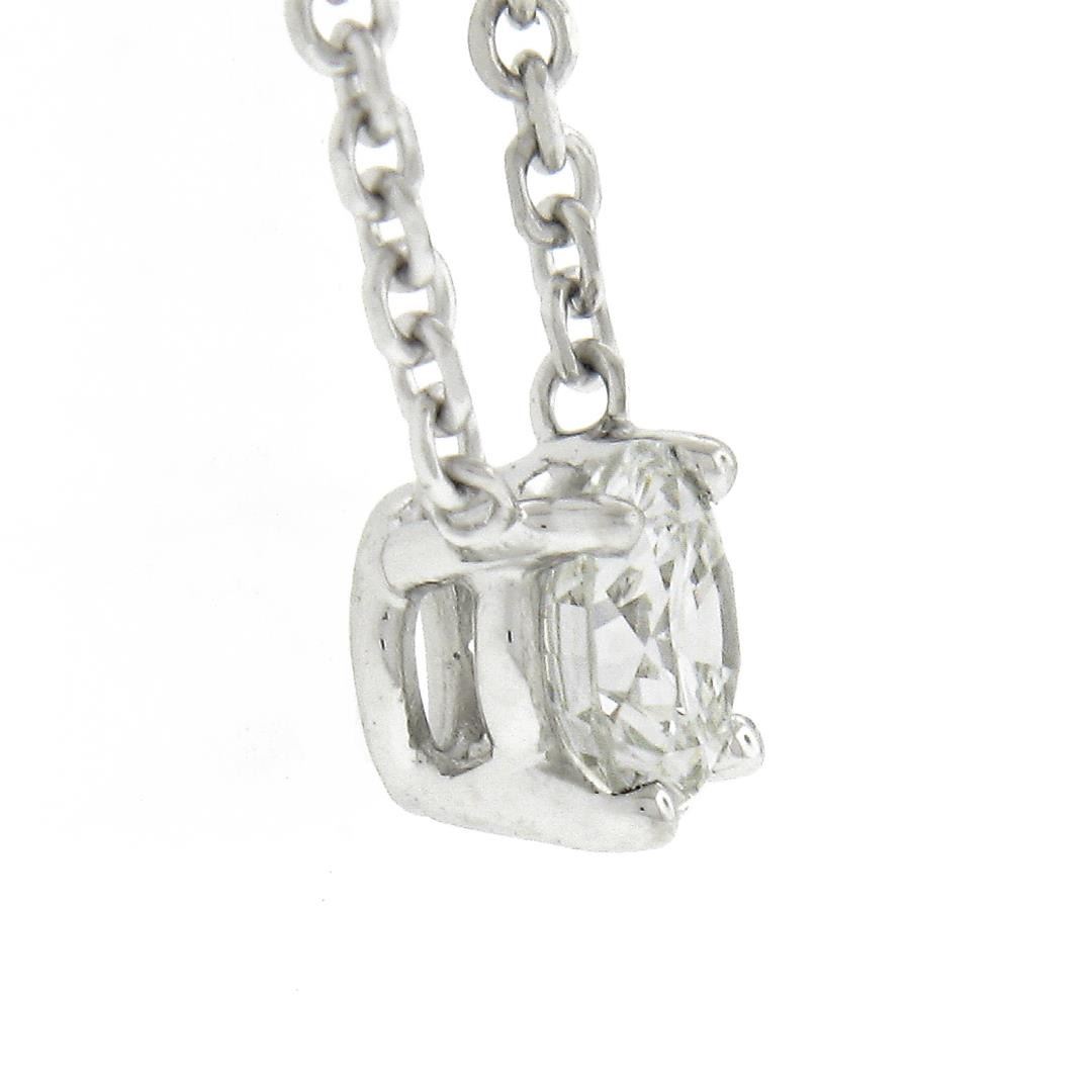 A new solid 14k white gold solitaire pendant necklace, with 1 round cut natural diamond (H - VS1/VS2 ; 0.33ct). Adjustable at 16 or 18 inch cable link chain, 2.38 grams total weight, pendant measures 5.4mm.