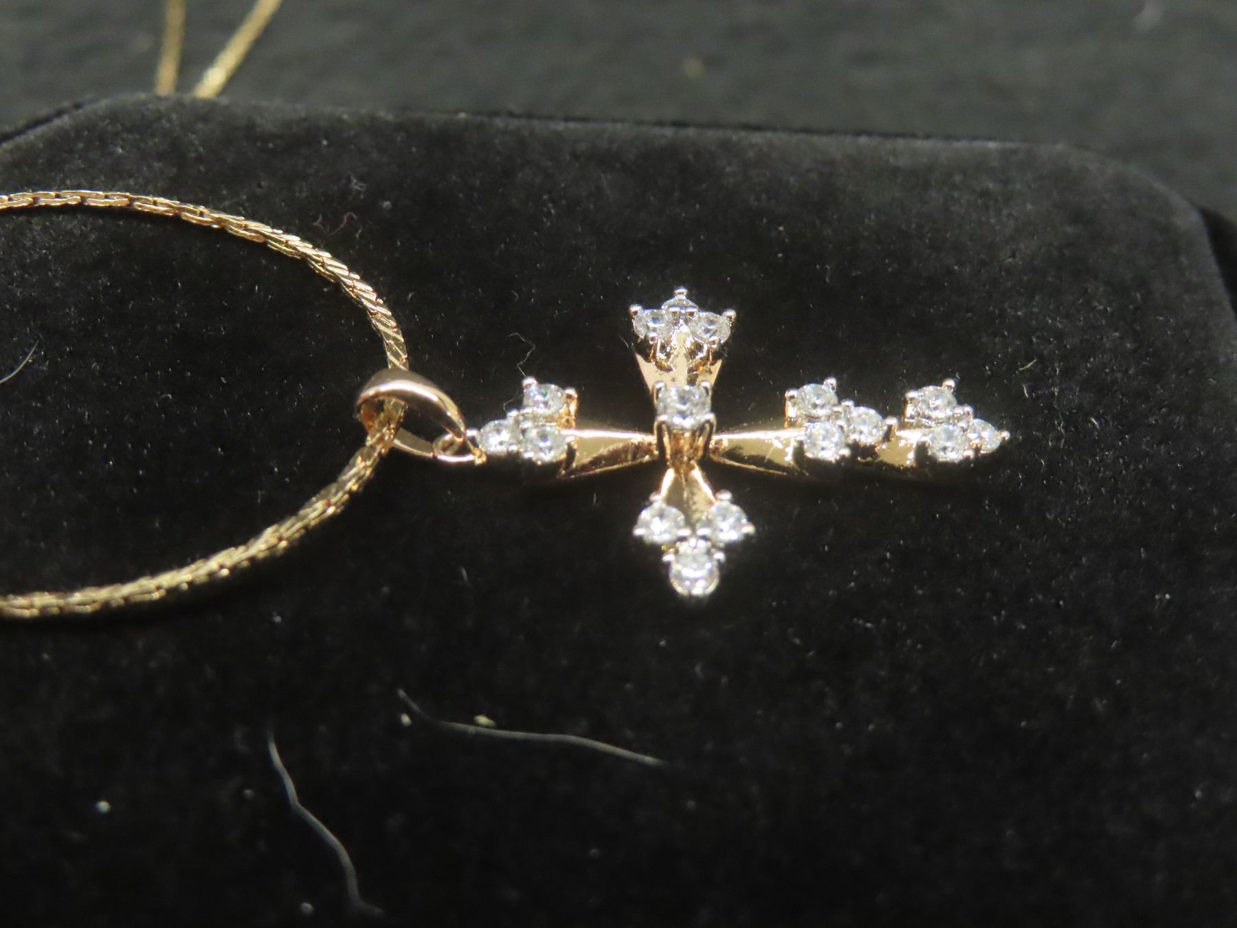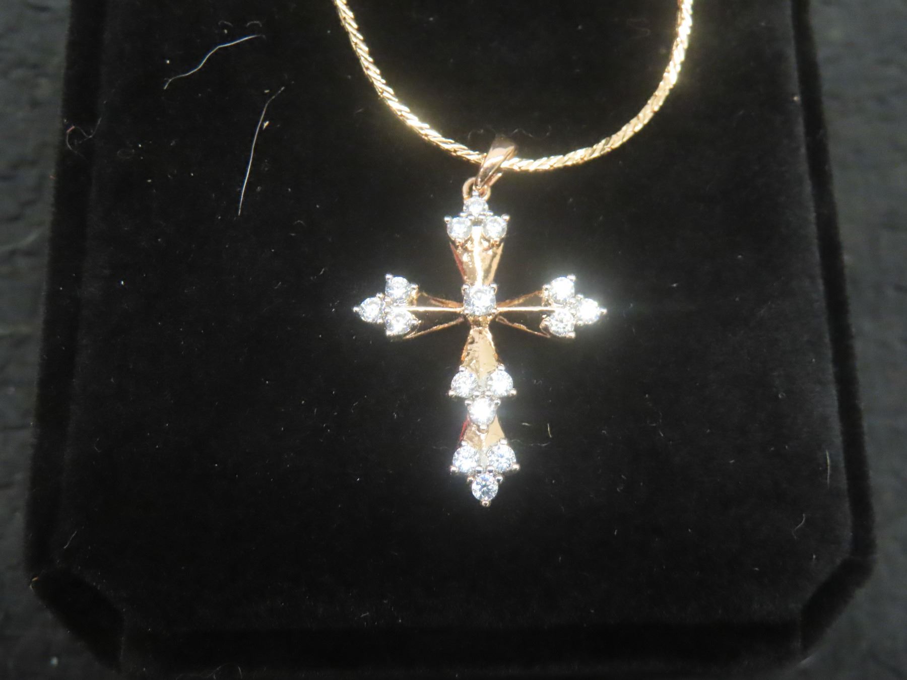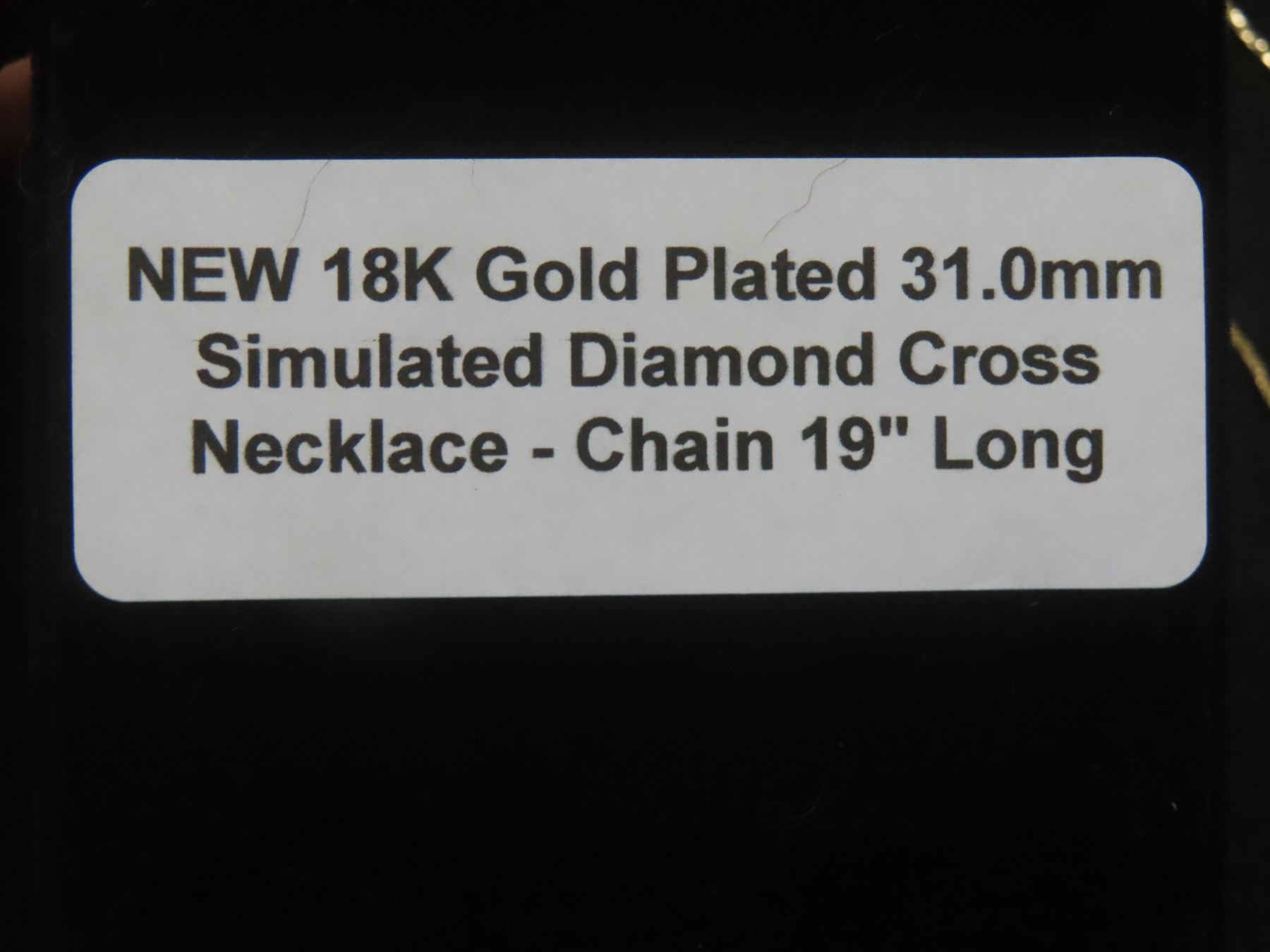 New 18K Gold-Plated 31.0mm Simulated Diamond Cross Necklace, 19" Chain