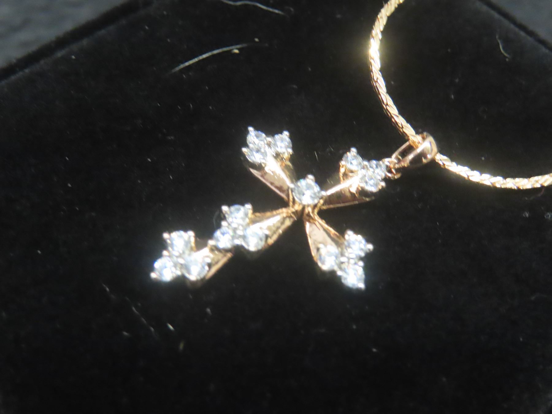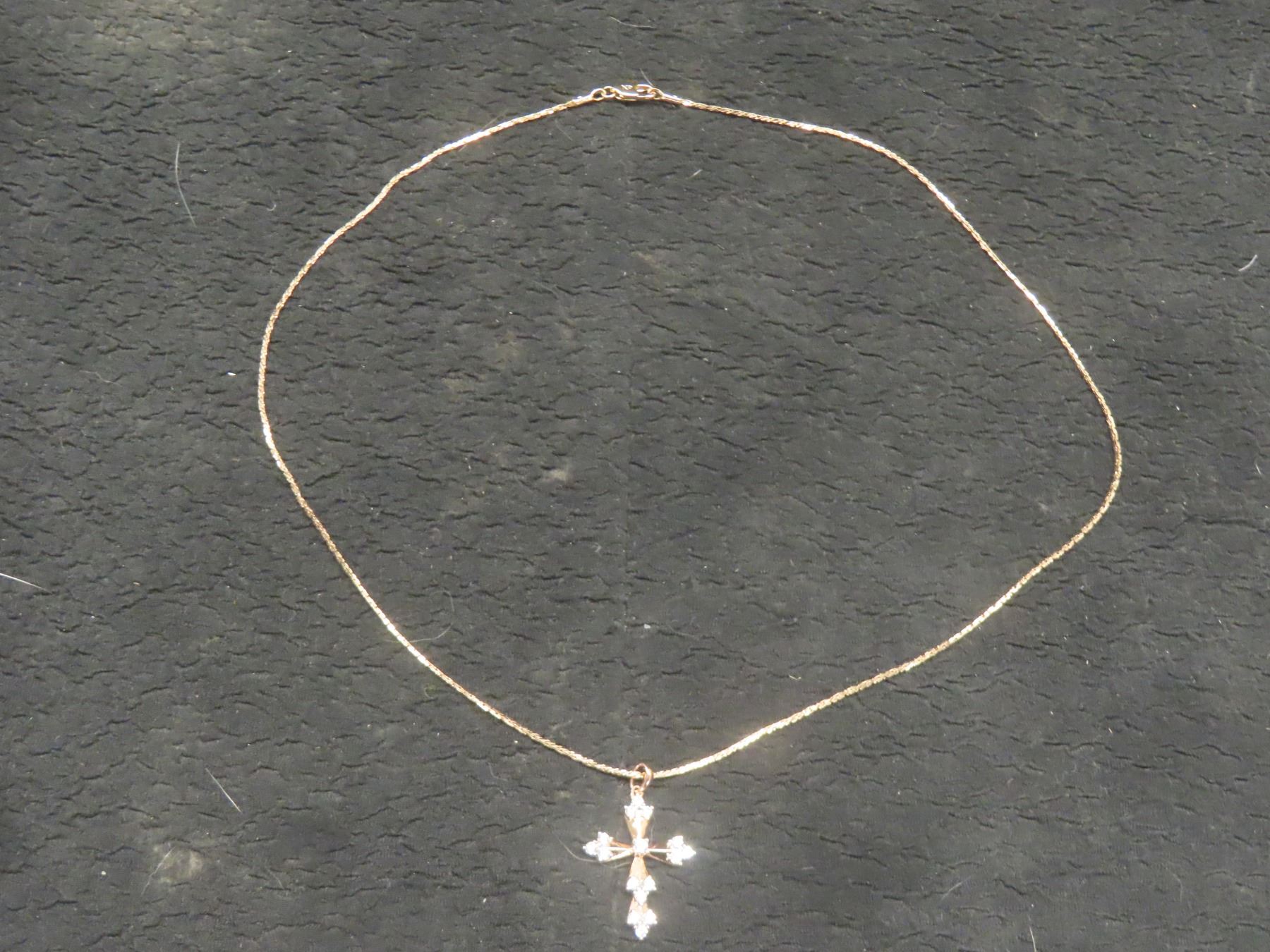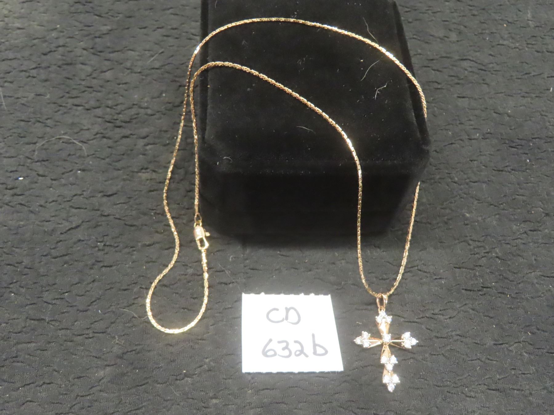 New 18K Gold-Plated 31.0mm Simulated Diamond Cross Necklace, 19" Chain