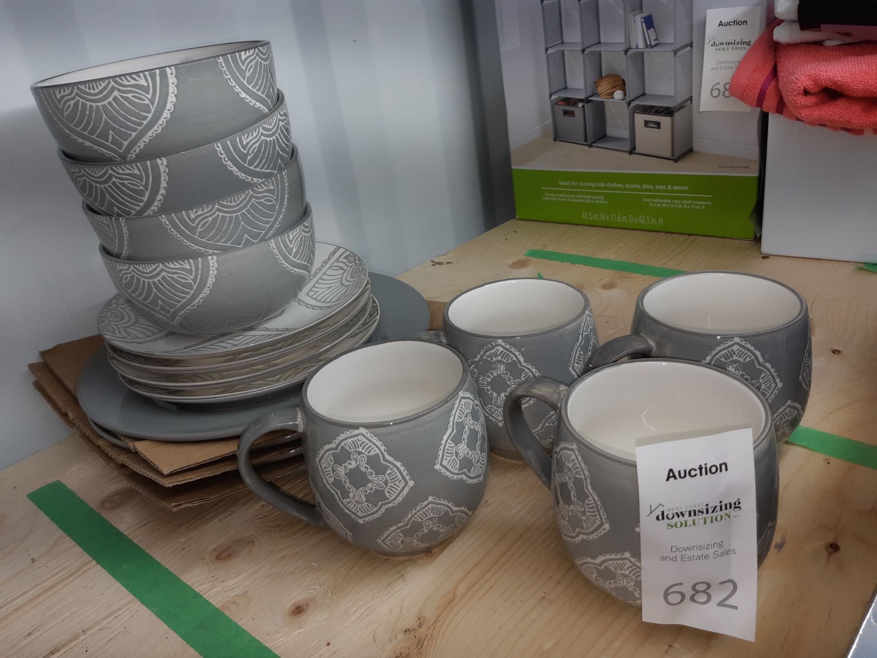 16 pce dinnerware for 4 people. Baum. Bring packing and pickup at 10 am