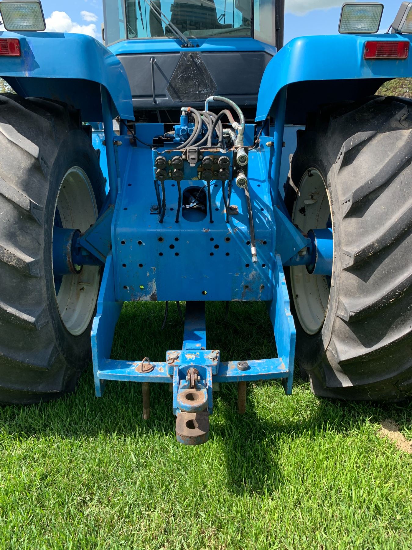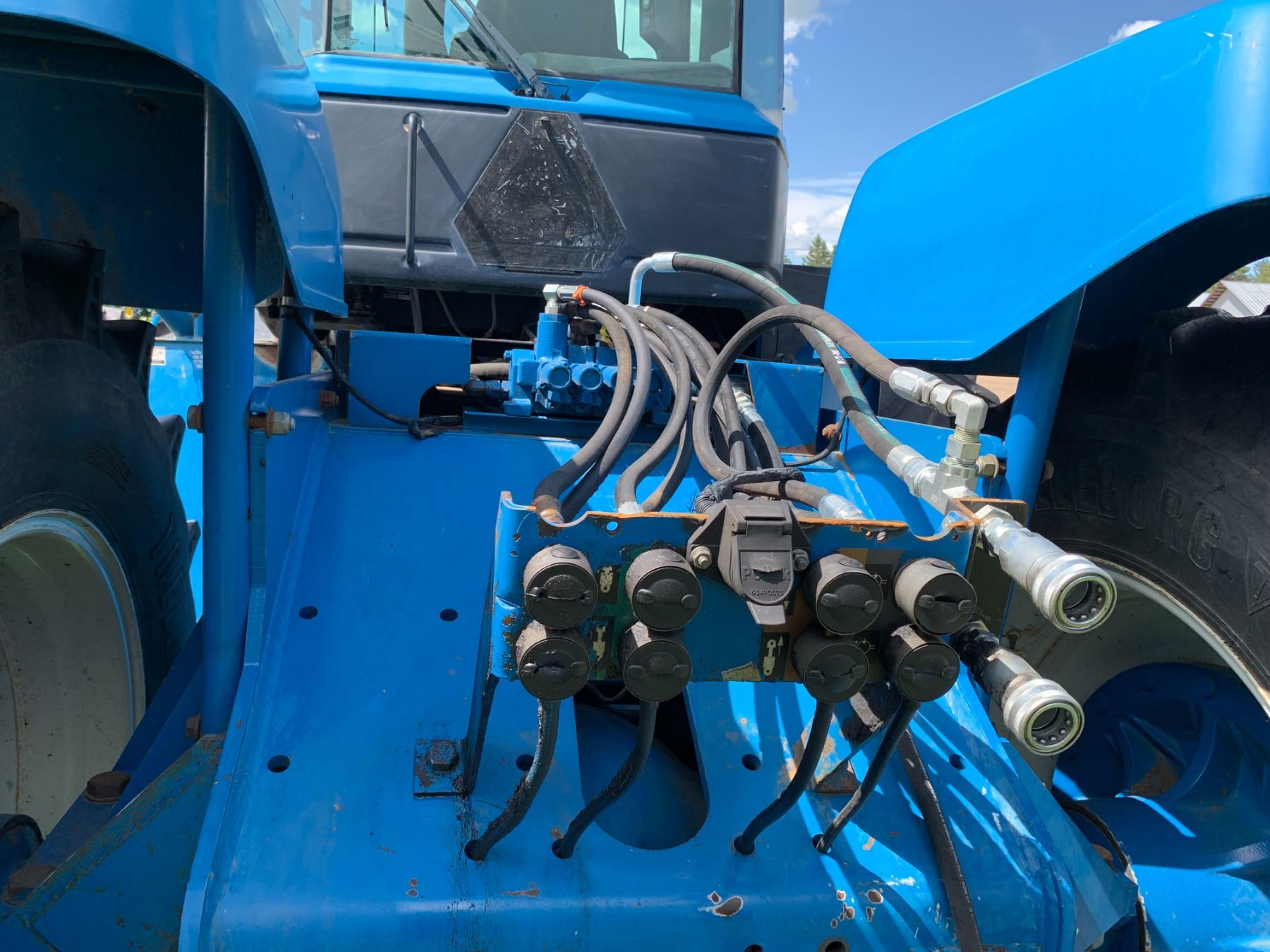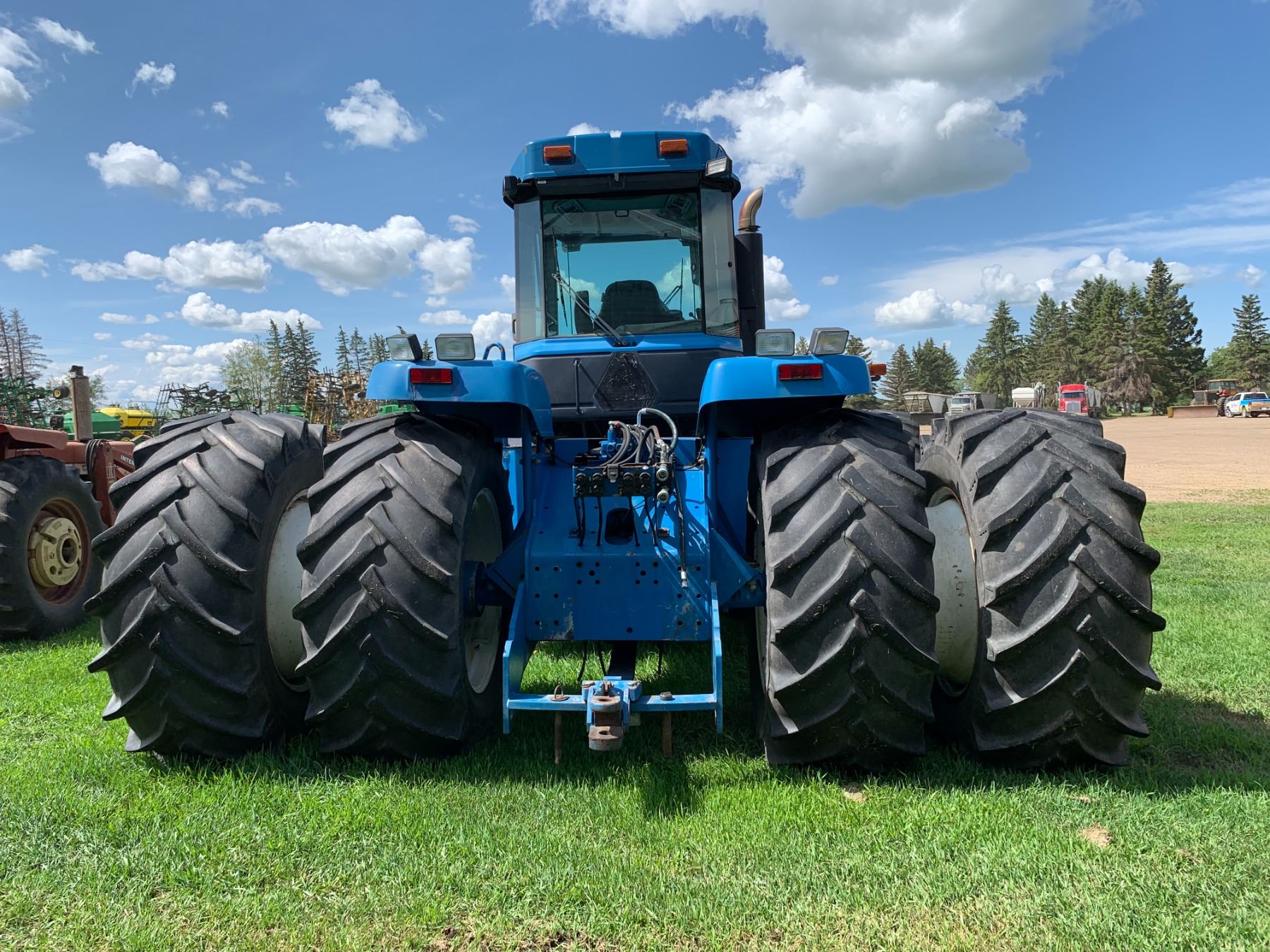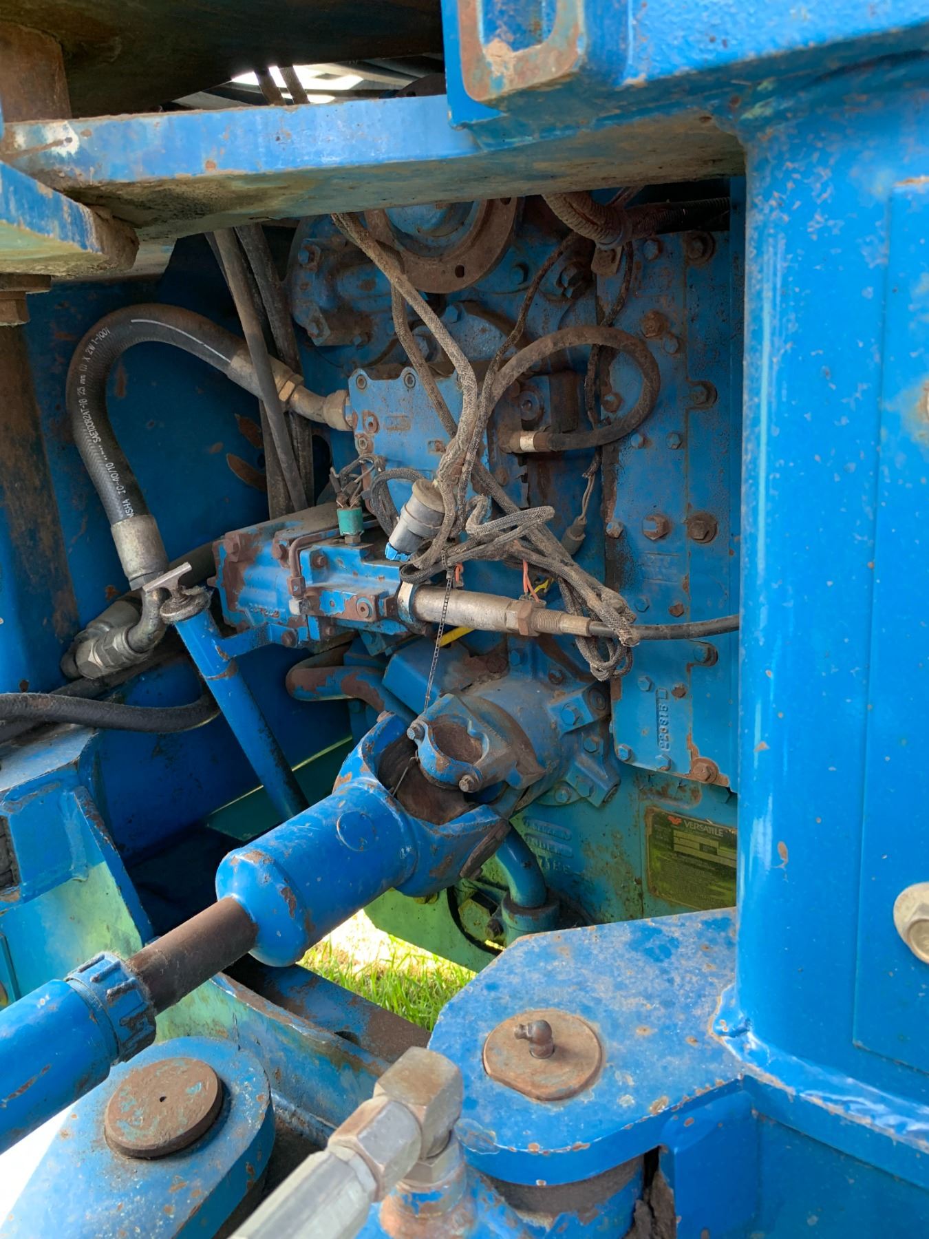 New Holland Versatile 9682 Tractor, 5 hyds, motor replaced from a 9862 425 HP, power shift, new flex plate, showing 2702 hrs, 700/65-38 tires, new rad & muffler, return line, new batteries, work orders, rebuilt implement control valve, all fluids have been replaced, c/w new headliner, hyd. pump, priority valve, AC comp., many new hyd. hoses, implement control cable & radio