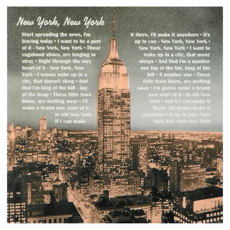 "New York, New York" is a one-of-a-kind hand-pulled silkscreen on canvas by Ringo (Daniel Funes) - protege of Andy Warhol's apprentice, Steve Kaufman. This piece is hand signed by the artist and Includes Certificate of Authenticity. This piece comes from the Andy Warhol Legacy Series. Measures approx. 16" x 16" (image). ** Please note: the signature for this piece is located on the bottom-edge of the canvas and will only be visible if the piece is matted flat when framed; see photo for reference. **