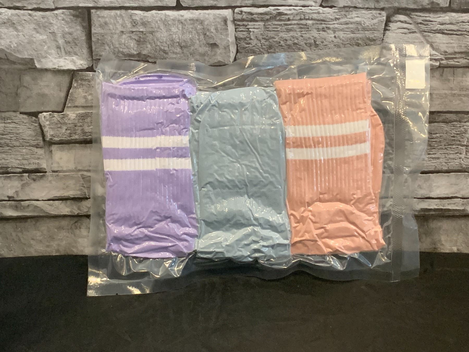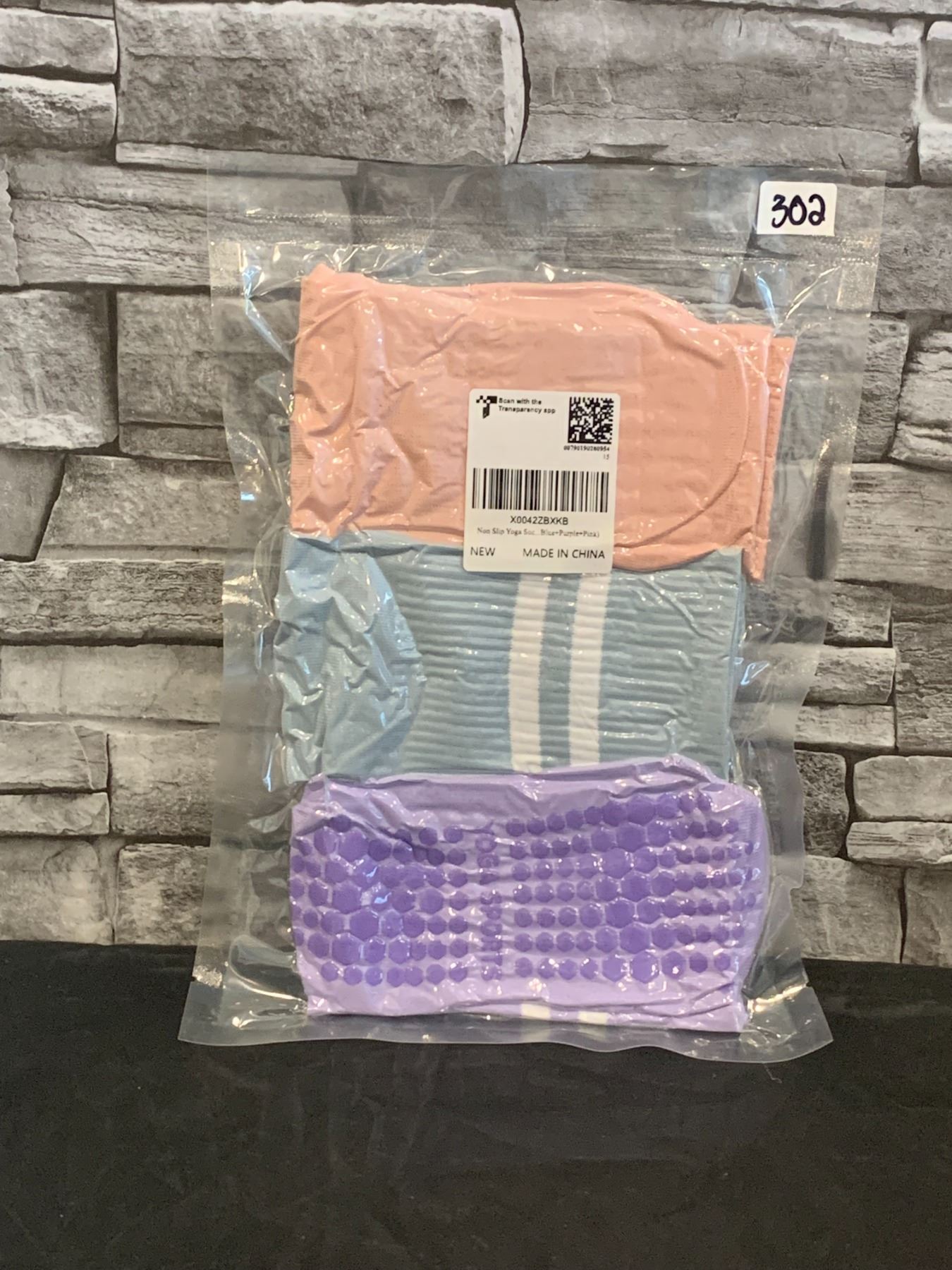 Non Slip Yoga Socks - 3 pk - Blue, Pink & Purple