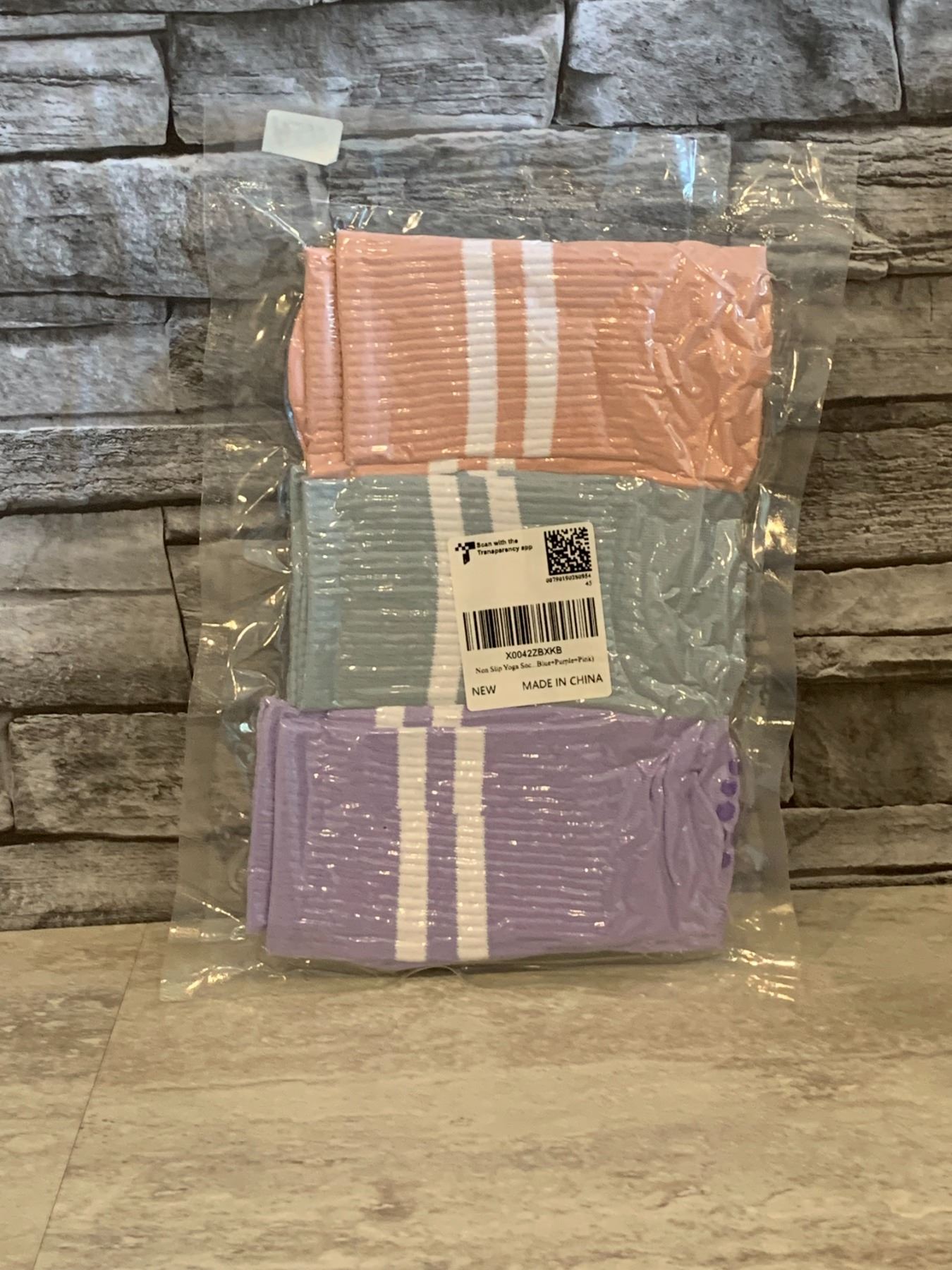 Non Slip Yoga Socks - 3 pk - Blue, Pink & Purple