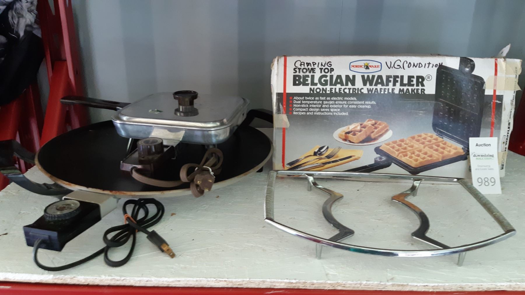 non electric Belgian Waffler, Toastess mini fry pan, By Bethany grill. Untested pickup at 9 am