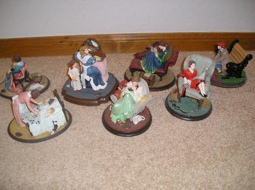 7 Norman Rockwell figurines including "Sitting Pretty", "Dear Diary", "Sweet Dreams", "Mother's Little Angels", "When I Grow Up", "Secret Sonnets", and "A Walk in the Park"