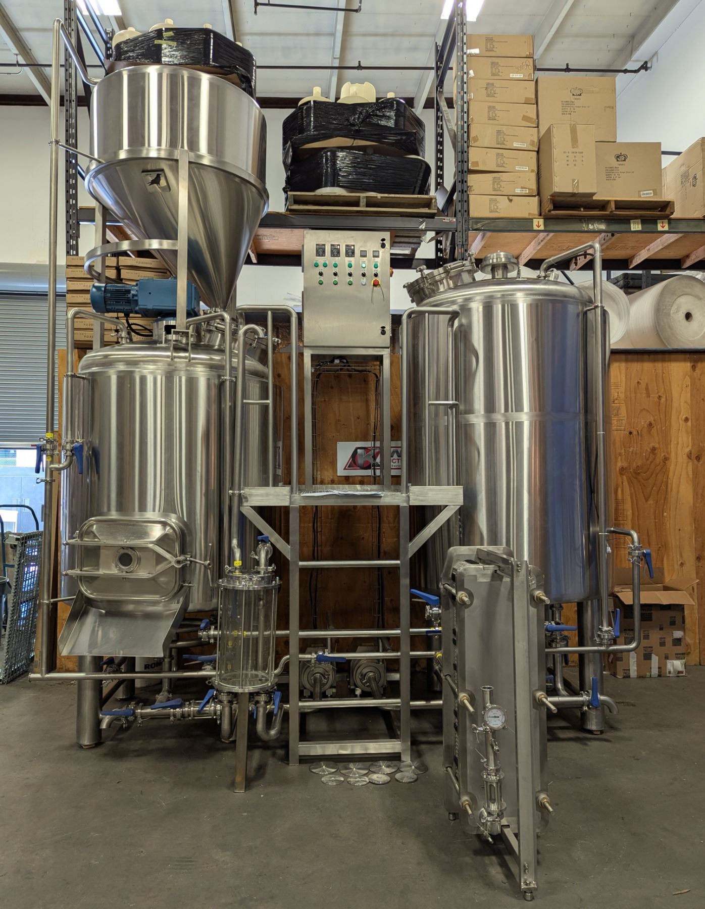 [New,] Mash/Lauter+Kettle/Whirlpool (10BBL working capacity/SUS304/Insulation/False Bottom/Rakes/Spent grain removal, (plough) Dual Transfer pumps/Grist Hydrator/"Nord" gearbox, with CSA certification, 208V/60Hz/3Ph
