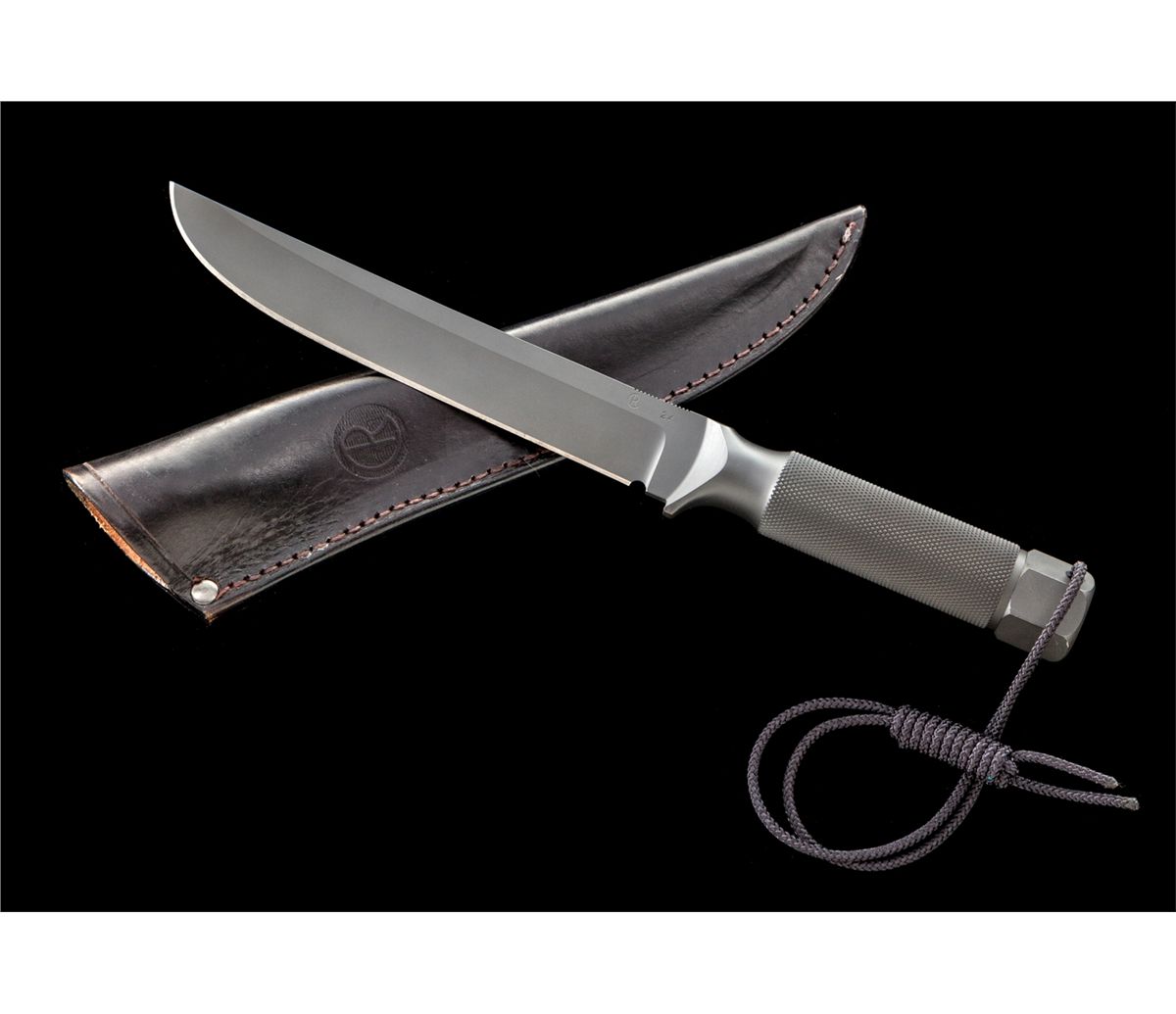 Numbered Chris Reeve Sable II Fixed Blade Knife, solid one-piece construction, 7'' blade is marked ''CR'' and ''24''. The overall length is 12''. Checkered handle and smooth removable aluminum butt cap, rubber o-ring, with a black wrist thong. Black leather sheath is stamped ''CR'' on the front. Condition is excellent and as new, showing no use. Sheath with minor scuffs and creases near the seam. Est.: $550-$750. (Ernest A. Bryant III estate)