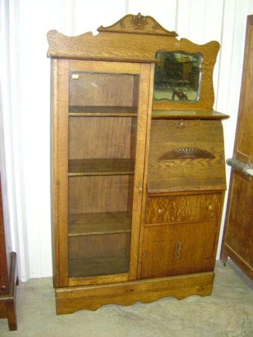 OAK SIDE BY SIDE; INTERIOR BANK IS RE-MADE; DRAWER FRONT SHOWS VENEER DAMAGE