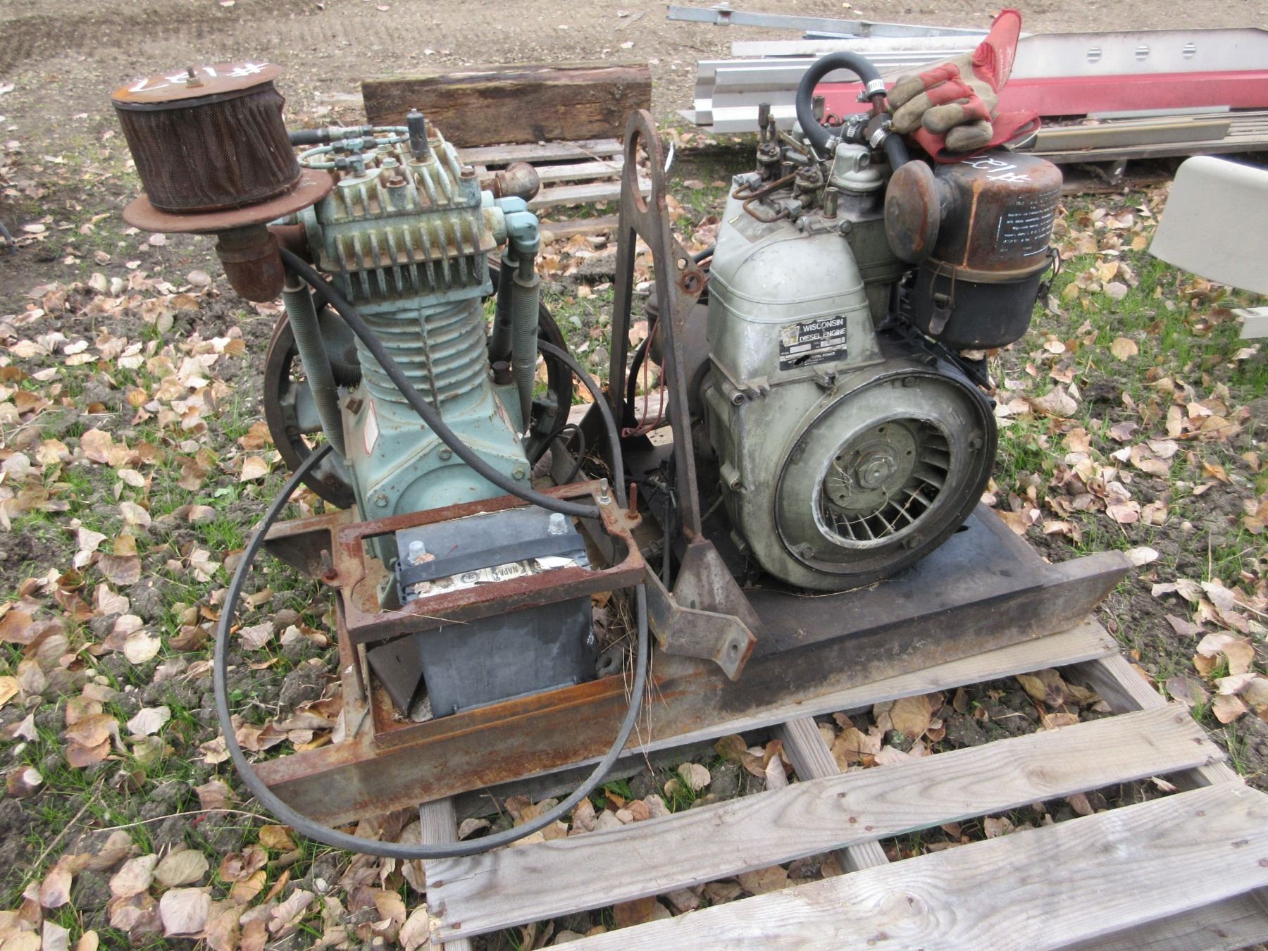 OLD COMPRESSOR C/W DIESEL WISCONSIN MOTOR