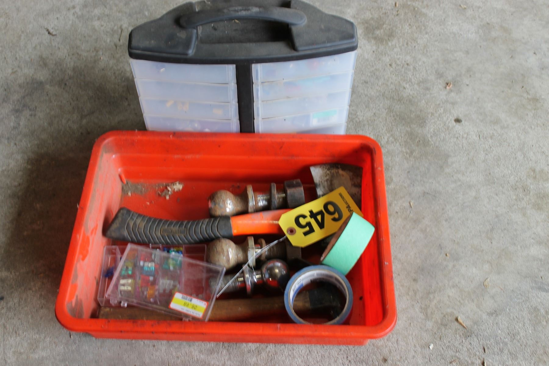 ORGANIZER WITH HARDWARE, RECEIVER BALLS, TAPE, ETC