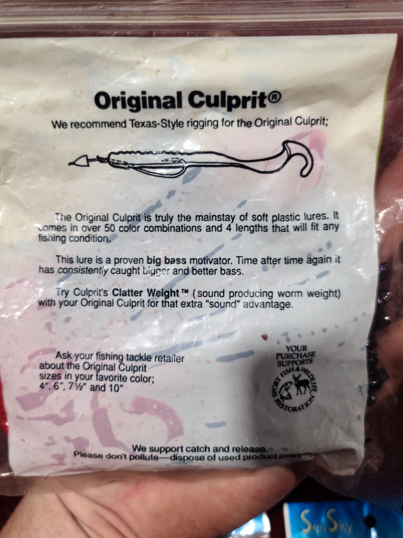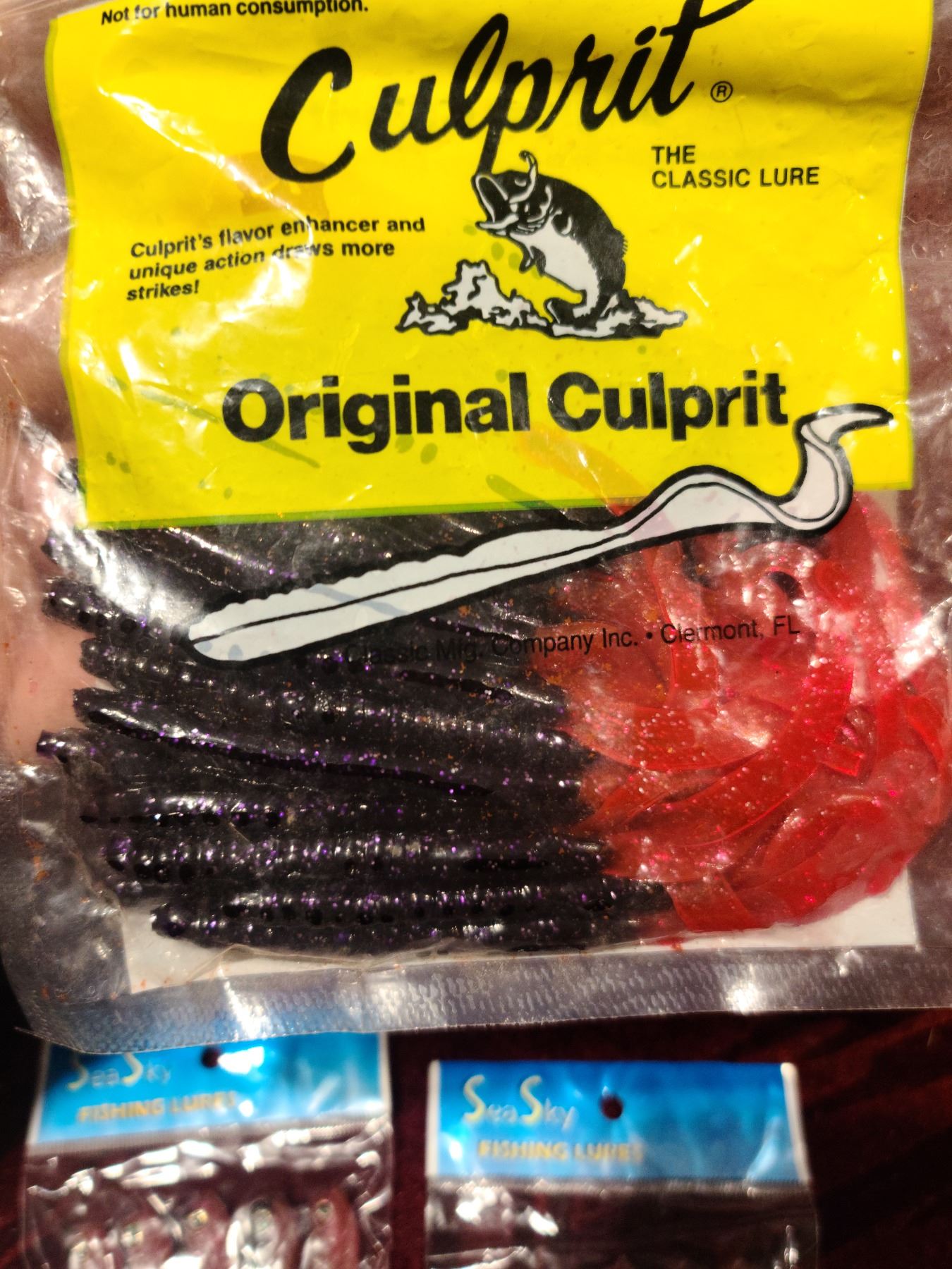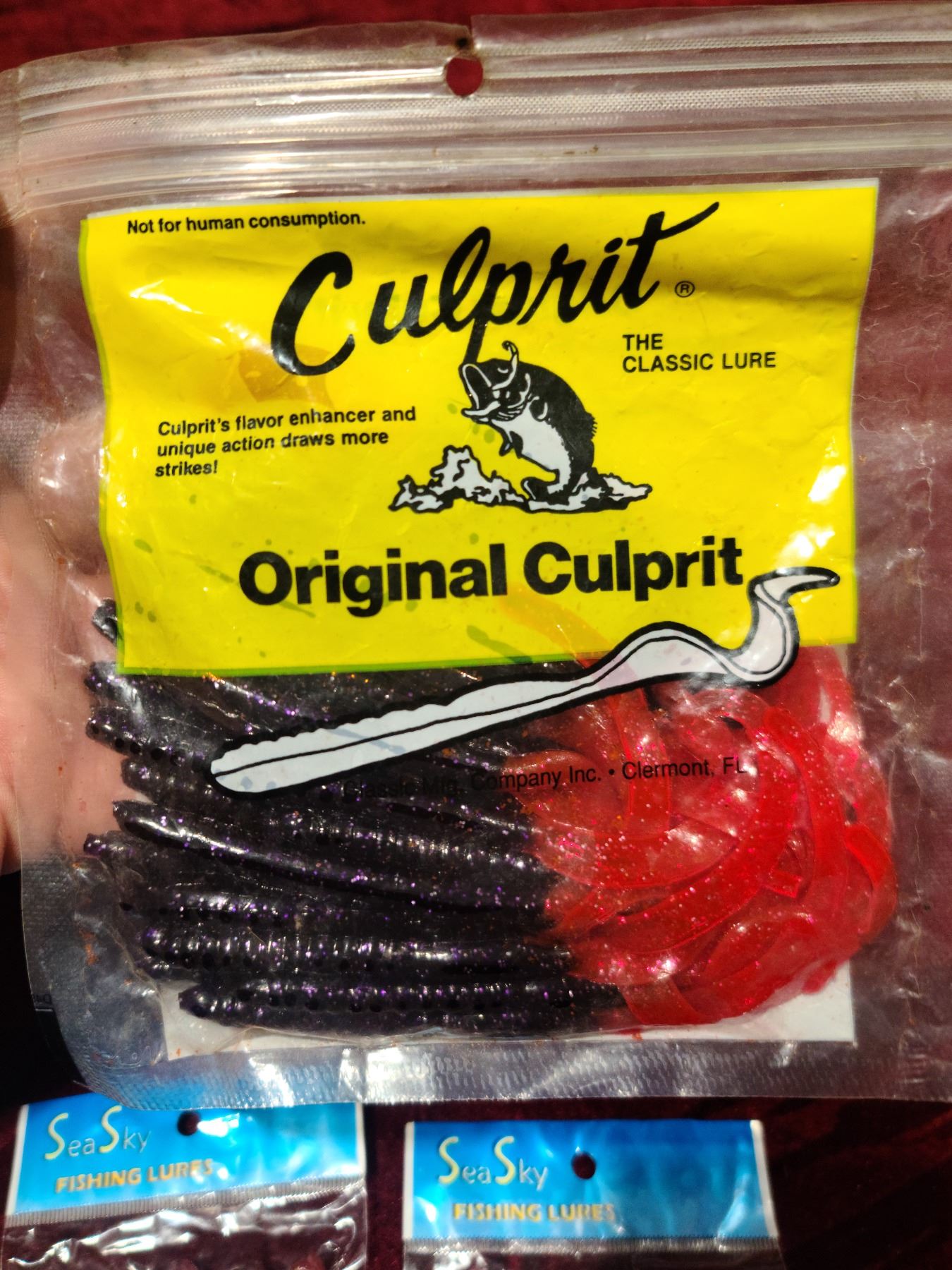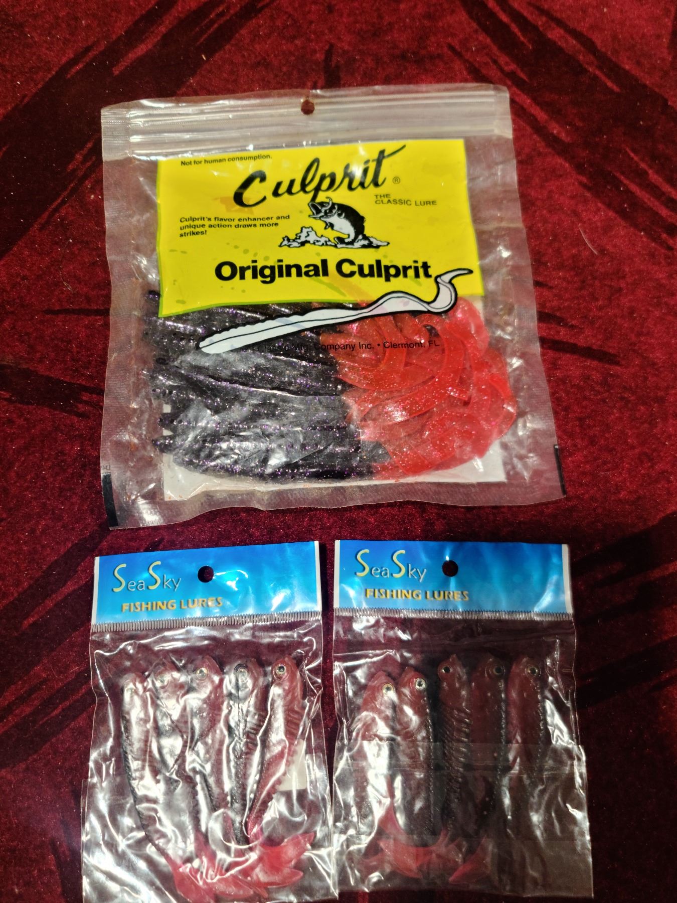 ORIGINAL CULPRIT - THE CLASSIC LURE - WORMS FOR TEXAS STYLE RIGGING AND 2 PACKS OF RED AND BLACK MIN