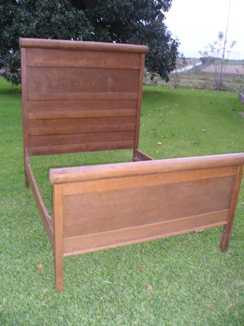 Full size oak bed with headboard, footboard and slats (65" tall).