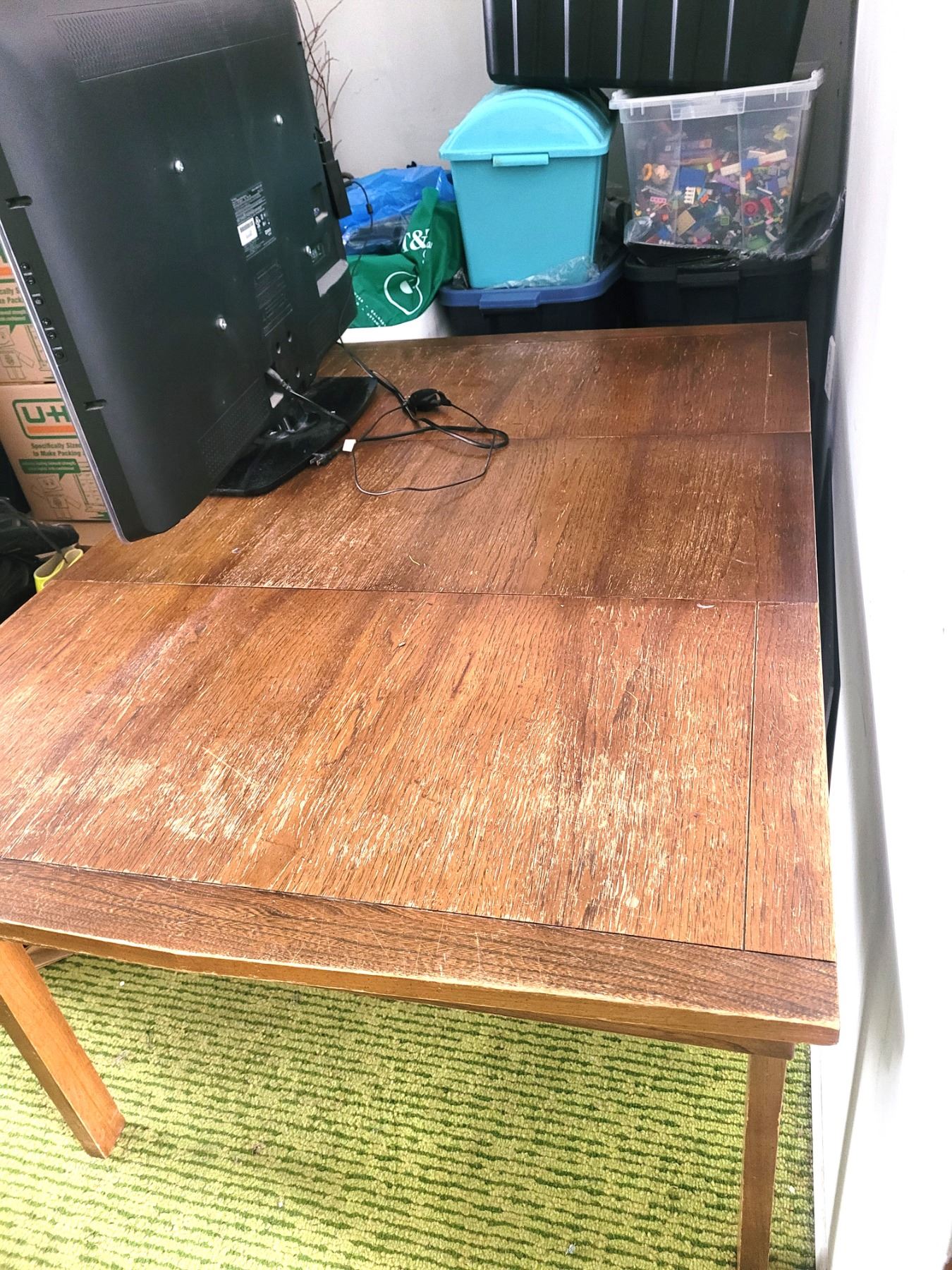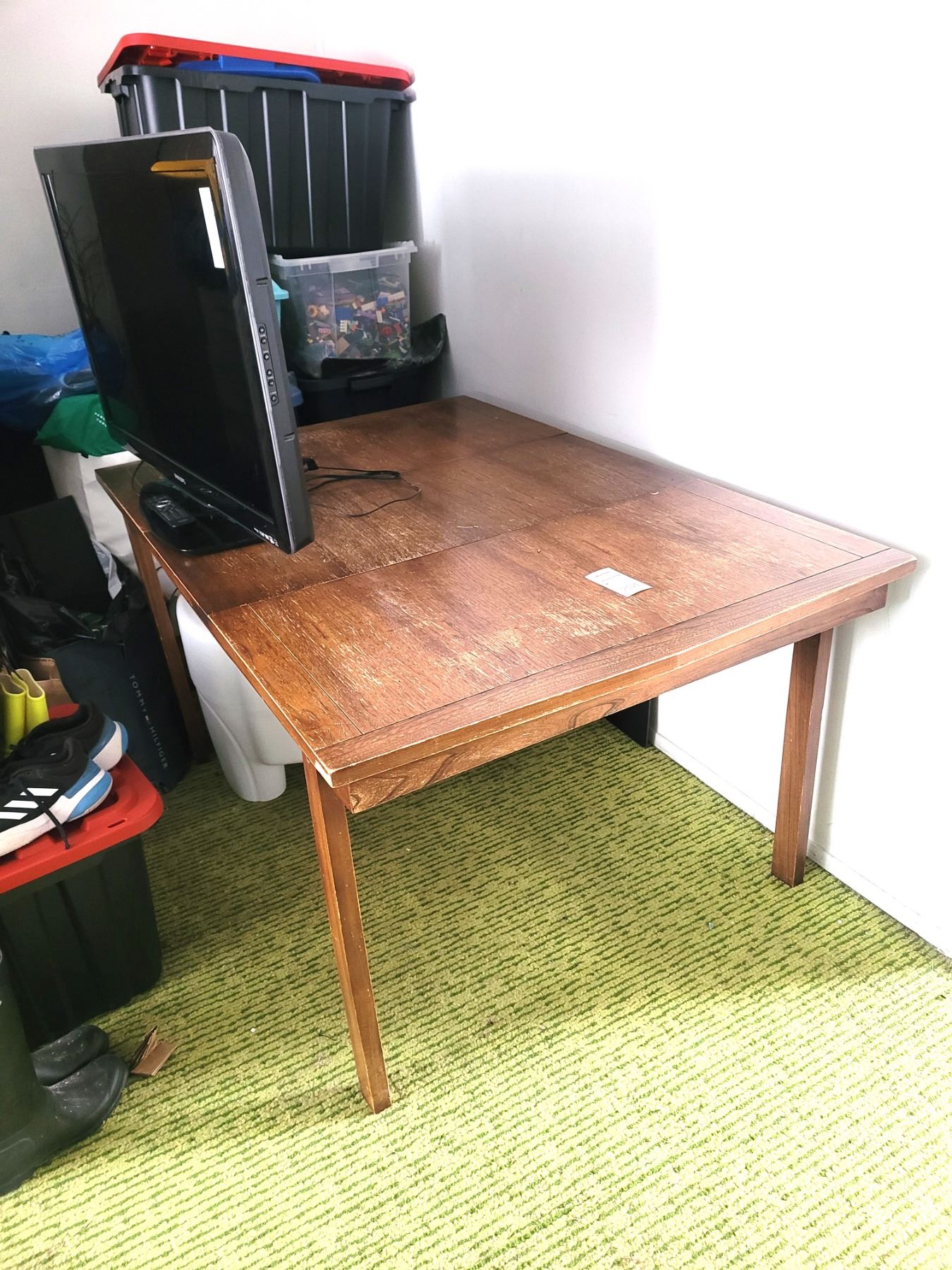 Oak dining table, measurement includes leaf, 60x39x30. Bring help, pick up 9.