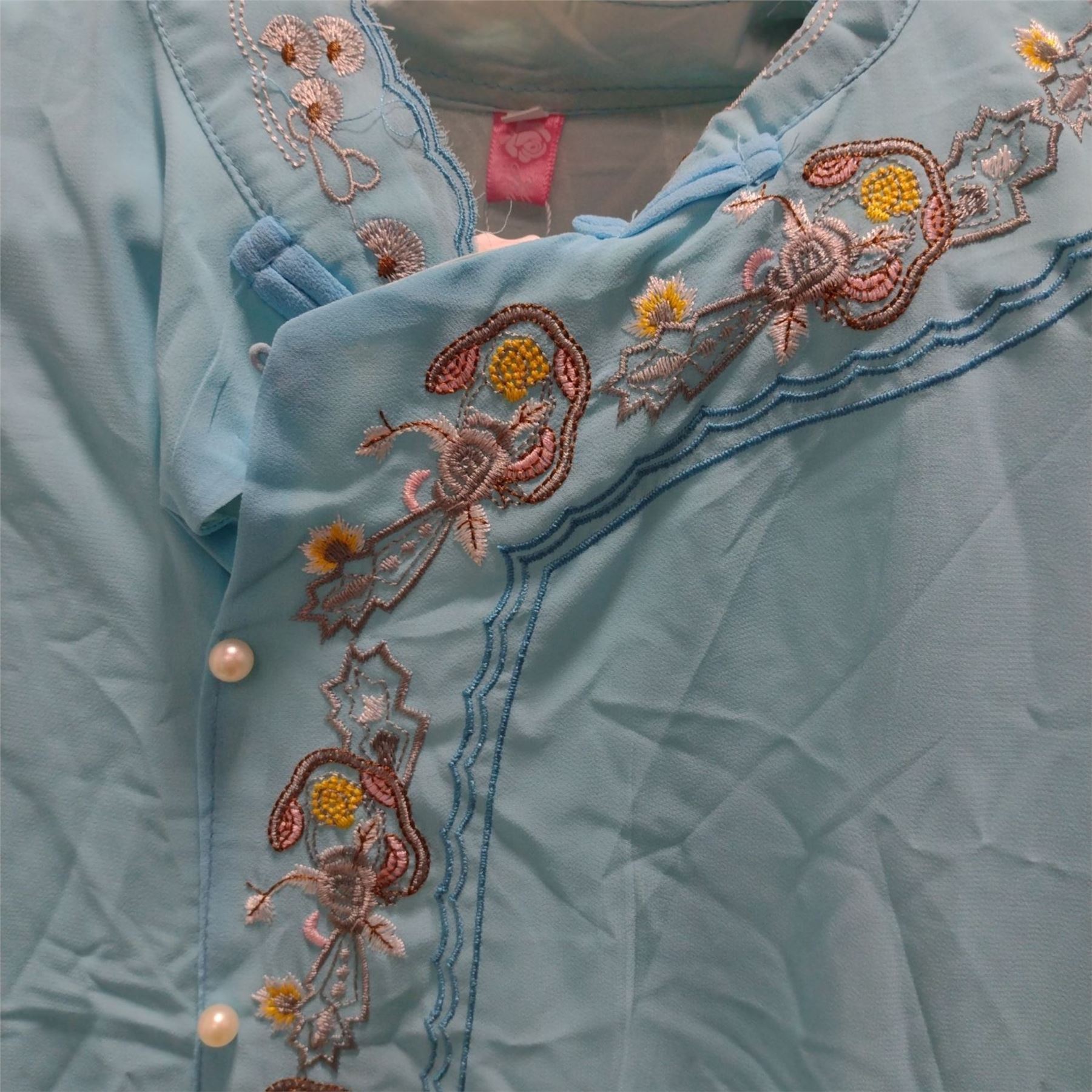 Ocean Blue Midi Dress with flower Embroidery with Pearly butttons size L