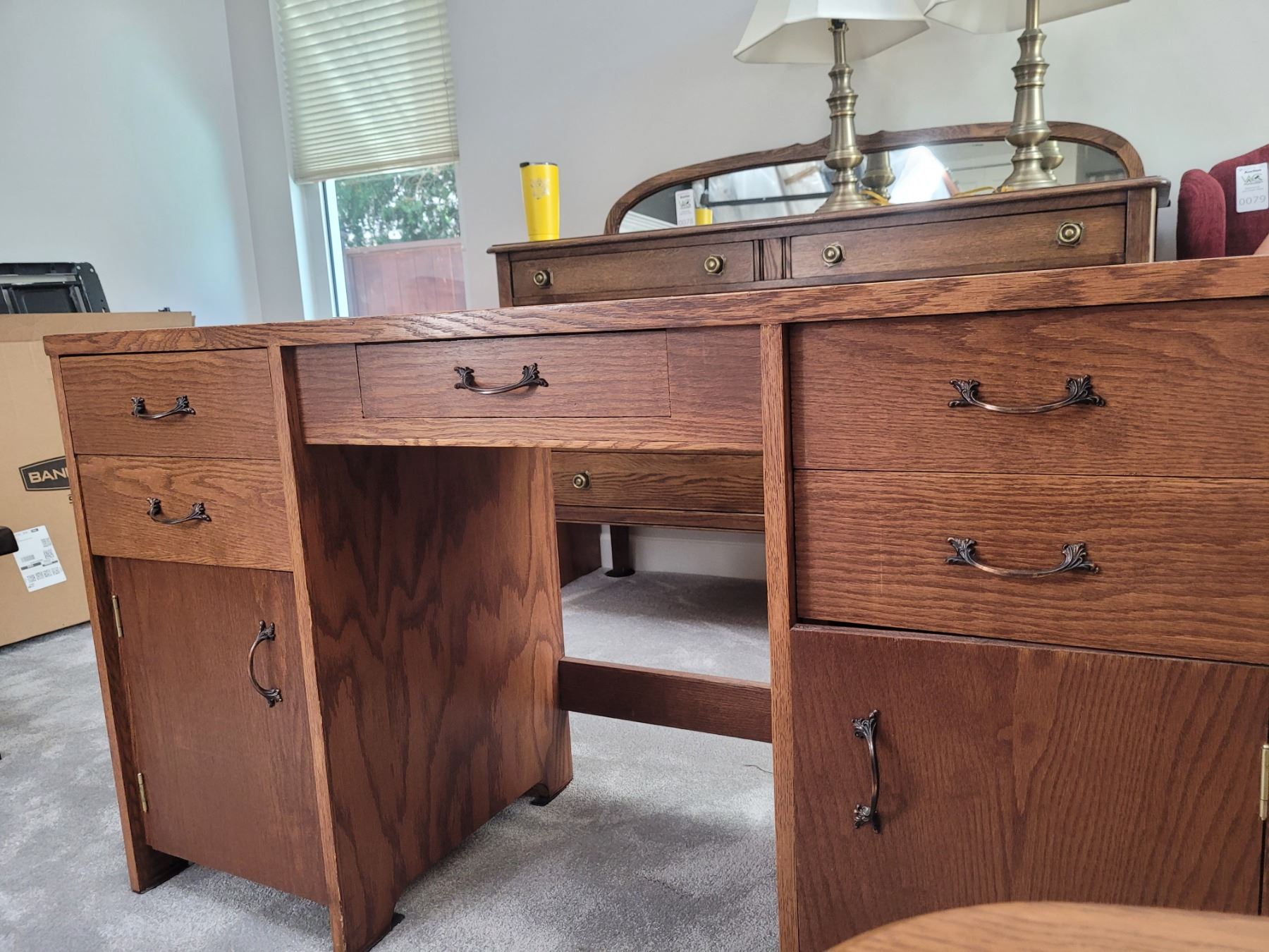 Office desk made from composite material, 53x20x29. Pick up 11-12 bring help