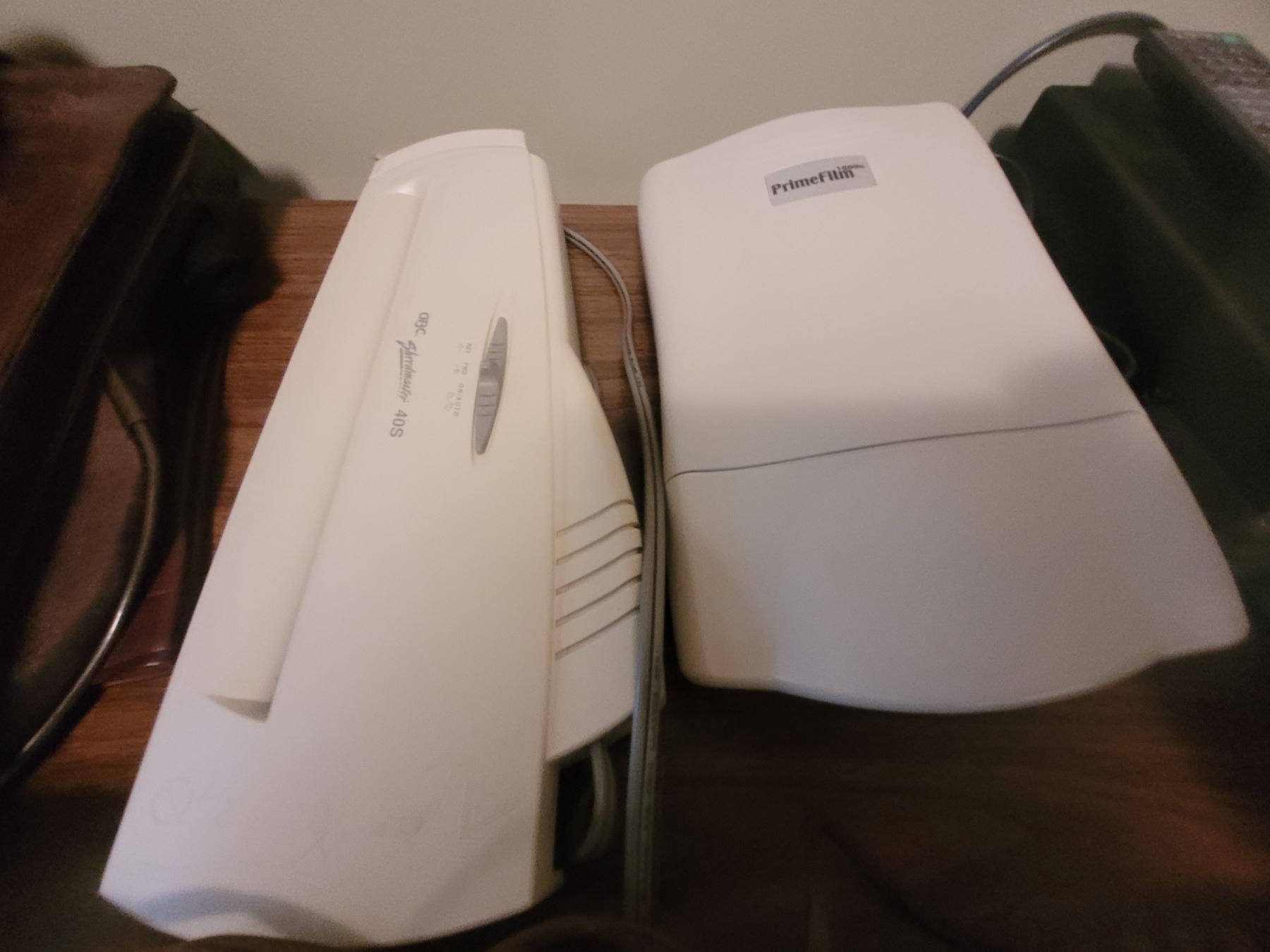 Sony dvd, cd player. Stationary, labels,counterfeit bill detector, raindesign ilap, Prime Film scanner, shredder, more. Pick up 9-10